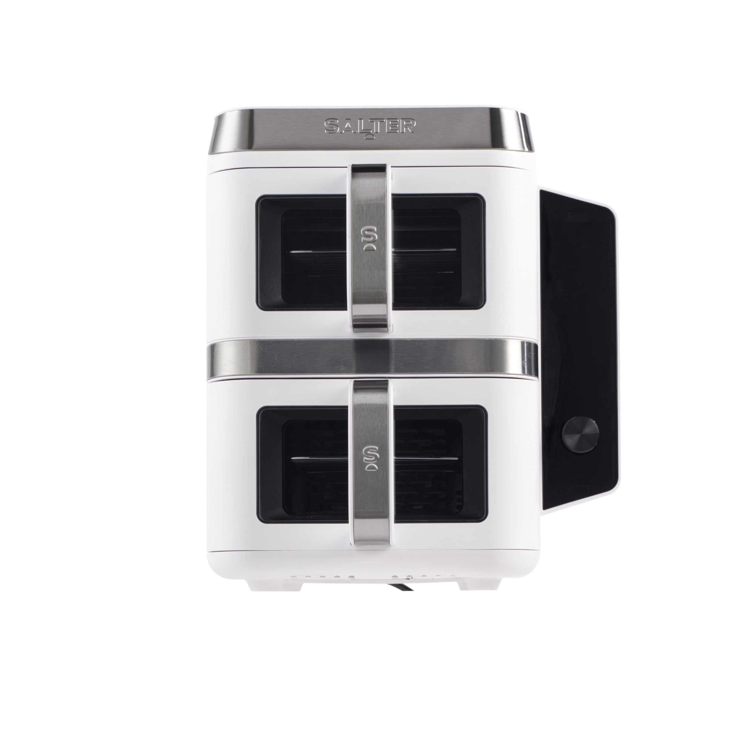 (Comparaison de l'énergie utilisée (kWh) par kg de poulet à l'aide d'un four électrique de 1,8 kW Friteuse Air Double Tiroir 9l Salter VertiCook Ultra Friteuse Empilable - Cuisson Verticale, 9L Friteuse Air Numérique écran Tactile Améliorez votre cuisine avec la friteuse à air Salter VertiCook View. Dimensions du produit. 33P x 42l x 38H centimètres · Couleur. Blanc · Capacité. 9 Litres · Puissance de sortie. 2400 Watts · Poids de l'article. 8 Kilogrammes Facile à utiliser : choisissez votre réglage à partir de l'écran tactile LED numérique avec molette de contrôle. Vous pouvez régler la température de 60 à 220 °C. Support De Friteuse À Air Comprimé Empilable Multicouche Pour Friteuse... 12 préréglages de cuisson : éliminez les devinettes de la cuisson avec une simple touche. Avec un design vertical, profitez d'une capacité généreuse de 9 L divisée en deux paniers de 4,5 L qui passent au lave-vaisselle et sans PFAS, vous permettant de cuisiner sur quatre niveaux. Les deux paniers de cuisson ont une fenêtre facile à voir pour garder un œil sur vos aliments sans avoir à ouvrir les tiroirs Test : salter VertiCook View, friteuse à air intelligente 9 L Cuisinez plus de 4 niveaux : chaque tiroir anti-adhésif sans PFAS passe au lave-vaisselle et comprend une grille en acier inoxydable pour que vous puissiez cuire deux fois plus d'ingrédients. Dépensez moins sur vos factures d'énergie : le saviez-vous ? L'utilisation d'une friteuse à air au lieu d'un four traditionnel peut vous faire économiser 50 % sur vos factures d'énergie.