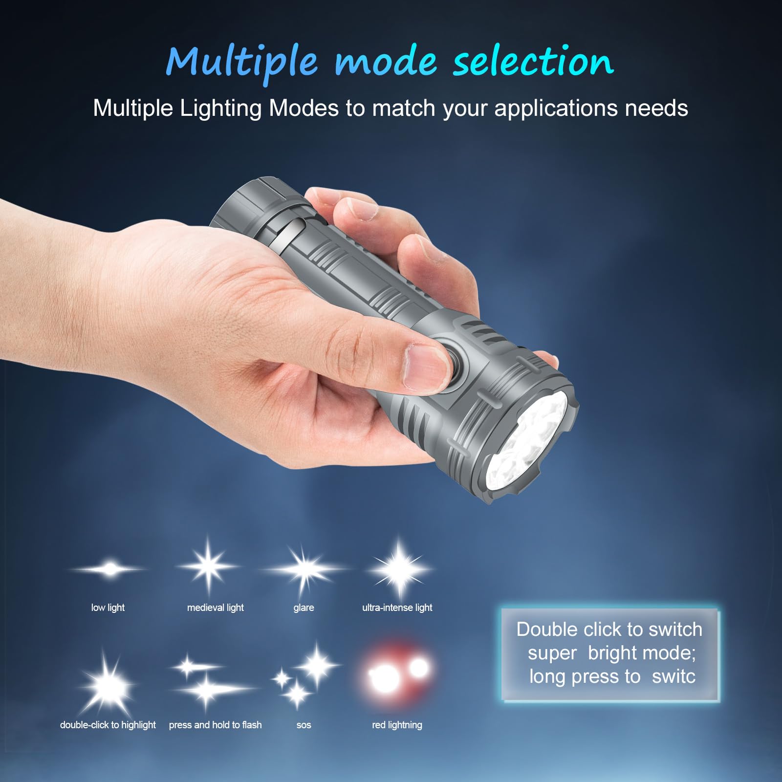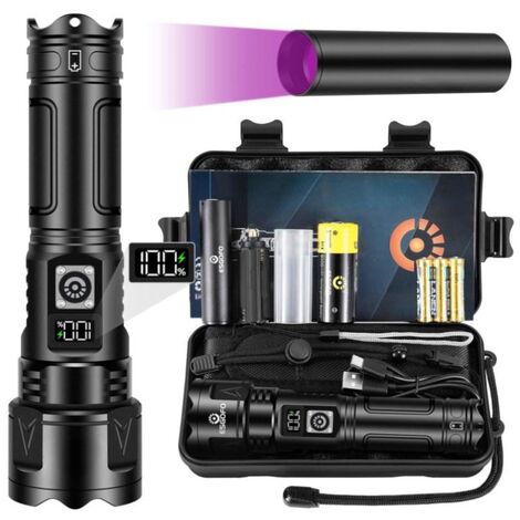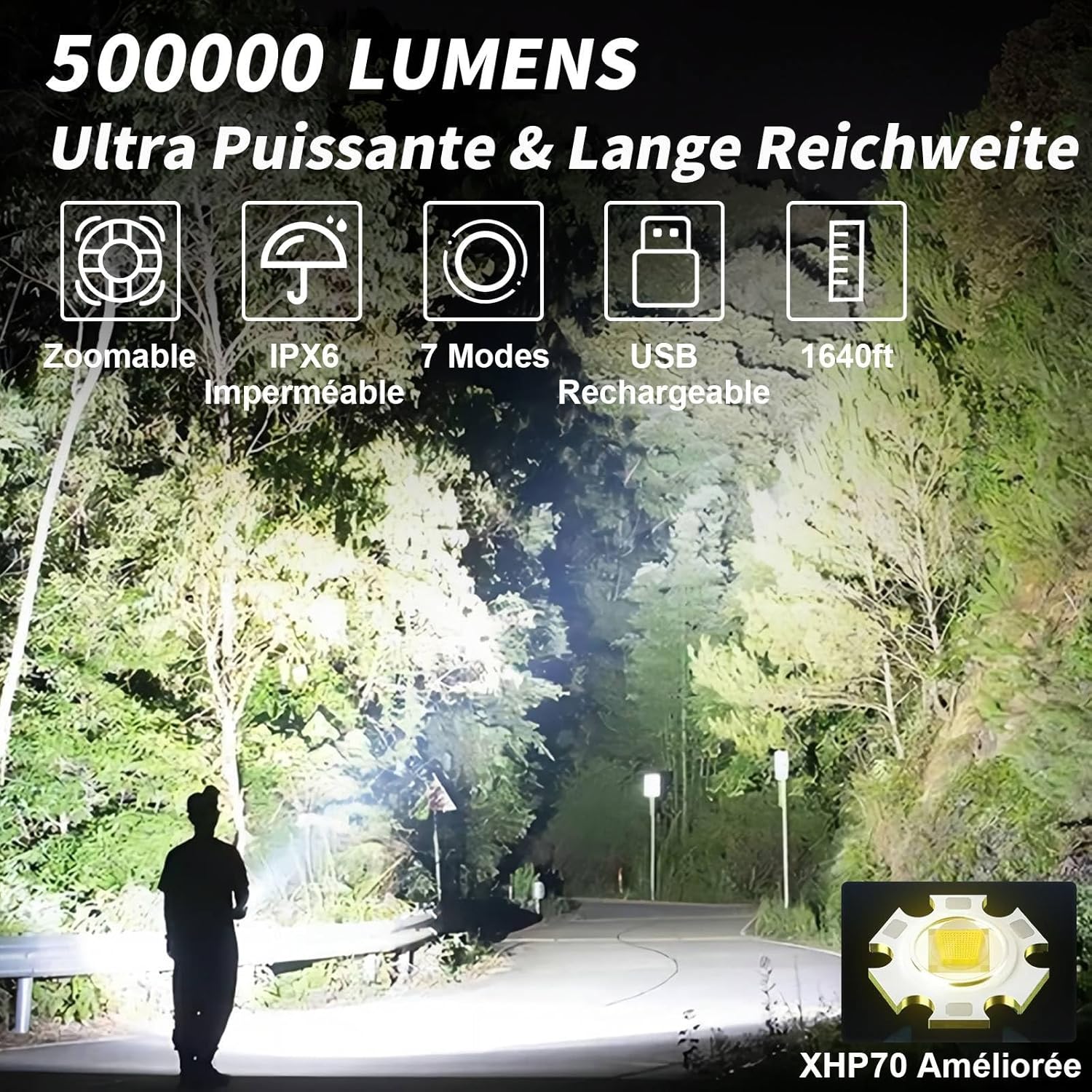 💡【Lampe Torche LED Ultra-Puissante】: Cette lampe torche led rechargeable utilise une puce LED XHP70., 2 avancée, offrant des performances stables et une luminosité extrême, 10 fois supérieure aux lampes torches traditionnelles. Laser Puissant Lampe Torche LED Ultra Puissante, 500000 Lumens Lampe De Torche Extérieur Camping Cette lampe torche puissante rechargeable est conçue pour le plein air, idéale pour promener son chien, le camping ou la course. De plus, cette lampe torche rechargeable peut recharger votre téléphone lors de pannes ou d'urgences. Des joints étanches en caoutchouc protègent efficacement contre la pluie ou la neige. (lampe torche ultra puissante, flashlight) Lampe Torche Ultra Puissante LED 500000 Lumens Batterie 5000mah 5 Modes Usb C Ip65 Etanche Zoom Item 14163716 La conception à zoom variable vous permet d'ajuster librement la focale, pour un éclairage focalisé à distance ou une illumination large de proximité, répondant facilement aux besoins de différents scénarios. Une pression rapide rallume automatiquement dans le dernier mode utilisé. L'ensemble comprend : 1 X Lampe torche 3 X Piles AAA 1 X Support de piles 1 X Tube en plastique (adaptateur) 1 X Câble de charge USB-C 1 X Étui de protection 1 X Dragonne 1 X Manuel d'utilisation 1 X Boîte de rangement 💡【Robuste et Durable】: Le boîtier en aluminium aéronautique résiste aux rayures, chocs et impacts, survivant même à un écrasement par véhicule. (lampe puissante, lampe de poche puissante) Cette lampe torche LED ultra-puissante utilise une puce LED XHP70.2, offrant une luminosité 10 fois supérieure aux lampes torches traditionnelles, elle éclaire facilement une pièce entière ou une route, répondant à vos besoins quotidiens en éclairage. LUMINOSITÉ INCROYABLE ET PUCE LED AMÉLIORÉE - équipée de la... NXPZ Lape Torche LED Ultra Puissante, 500000 Luen Lape De Poche... Elle propose 5 modes d'éclairage (Haut, Moyen, Bas, Stroboscopique, SOS), une opération simple avec commande par bouton unique, maintenez le bouton enfoncé pendant 3 secondes pour éteindre la lumière, sans avoir à parcourir tous les modes, utilisation pratique. L'écran LCD d'affichage de la batterie indique en temps réel la charge restante, évite les coupures intempestives, prend en charge la charge USB, et peut fournir une charge d'urgence à votre téléphone en cas d'urgence, améliorant l'aspect pratique. 💡【Affichage LCD et Recharge USB】: Rechargeable via tout adaptateur avec port USB. Cette lampe torche LED ultra-puissante utilise une puce LED XHP70., 2, offrant une luminosité 10 fois supérieure aux lampes torches traditionnelles, elle éclaire facilement une pièce entière ou une route, répondant à vos besoins quotidiens en éclairage.