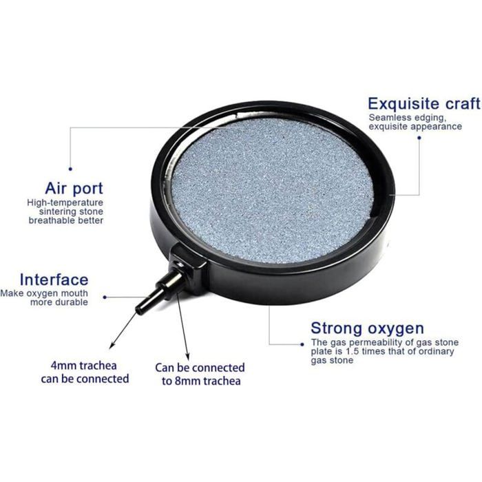 Il s'agit d'une solution universelle adaptée à différents types d'aquariums et d'environnements de culture. Pierre à Bulles Fine 5W Pierre à Bulles Aquarium, Air Aquarium Ultra Silencieux Bulleur Aquarium Diffuseur Air Stone Diffuseur Air Aquarium Caractéristiques techniques : Couleur : gris. Ce diffuseur d'air décoratif apporte non seulement de l'oxygène à l'eau, mais ajoute également une touche naturelle à votre aquarium. Fabriqué en pierre de lave... Remarque : (la pompe à air n'est pas incluse dans la livraison). Taux élevé d'oxygène dissous : l'aquarium en pierre à air est fritté à haute température, libère des bulles plus petites, plus denses et plus uniformes, augmentant efficacement la teneur en oxygène, tout en réduisant la teneur en dioxyde de carbone dans les aquariums, les aquariums et les systèmes hydroponiques et augmentant le pH Pierre à air pour Aquarium, 10 pièces 2.5 cm diffuseur de Bulle de Cylindre d'aquarium d... un petit connecteur en T. Type de matériau : plastique Source d'alimentation : filaire Piles incluses : Remarque : Tremper avant utilisation : veuillez mettre le produit dans l'eau pendant dix minutes avant utilisation et l'utiliser avec une pompe à oxygène d'une puissance supérieure à 5 W, sinon l'effet de sortie d'air souhaité ne sera pas atteint. Principe de fonctionnement : la pierre gazeuse pour aquarium est reliée à la pompe à air par le tuyau (la pompe à air n'est pas incluse dans le paquet), la pompe à air crée un flux d'air qui passe à travers la pierre poreuse et crée des bulles d'air qui libèrent de l'oxygène dans l'eau, ce qui soutient l'échange de gaz pour former un circuit d'eau efficace. Aération de l'habitat,JxAir-Pompe à oxygène pour aquarium,pierre à Une valve de régulation. Utilisation polyvalente : que vous ayez un petit aquarium, moyen ou grand, vous pouvez utiliser cet ensemble pour améliorer l'effet d'oxygène dissous.