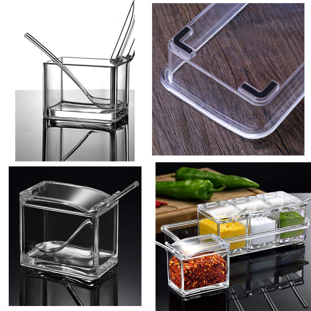 Saijer Salière et Poivrière,Pots à Épices Conteneurs à Épices Boîte d Matériau PS - La boîte d'assaisonnement est fabriquée en matériau PS de qualité alimentaire respectueux de l'environnement, non toxique, sûr et sain pour protéger votre santé et celle de votre famille. Boite A Epice Assaisonnement Box Set,W-Unique 4 Pièces Bouteilles Transparentes Sel Pots épices Acrylique Couleur: transparent Matériel: PS Capacité unique: 300ML Dimensions hors tout: largeur 20,5 cm, profondeur 7,5 cm, hauteur 10 cm Emballage inclus: 3 x boîte à épices 3 x cuillère à soupe 1 plateau Pots à Épices Boîte de Rangement d'Assaisonnement de Cuisine 3... Pot à épices - DIOCHE - Boîte de Rangement - Couvercle et Cuillère... Le réservoir d'assaisonnement est bien scellé, ne rend pas l'assaisonnement humide et moisi et empêche la poussière de pénétrer. Pot d'assaisonnement largeur - largeur 20,5 cm, profondeur 7,5 cm, hauteur 10 cm, comprenant 3 boîtes de vanité séparées, 3 cuillères et un plateau amovible, faciles à nettoyer et à ranger. Conception transparente - Chaque pot est composé d'un couvercle et d'une cuillère La boîte transparente permet de visualiser plus facilement le contenu de chaque pot d'assaisonnement. -Lavage à la main, ne pas mettre au lave-vaisselle. Conteneurs séparés - Il y a 3 conteneurs séparés pour le réservoir d'assaisonnement. 3 boîtes d'assaisonnement en acrylique transparent -L'ensemble d'assaisonnement transparent peut économiser de l'espace et garder la cuisine propre et généreuse.