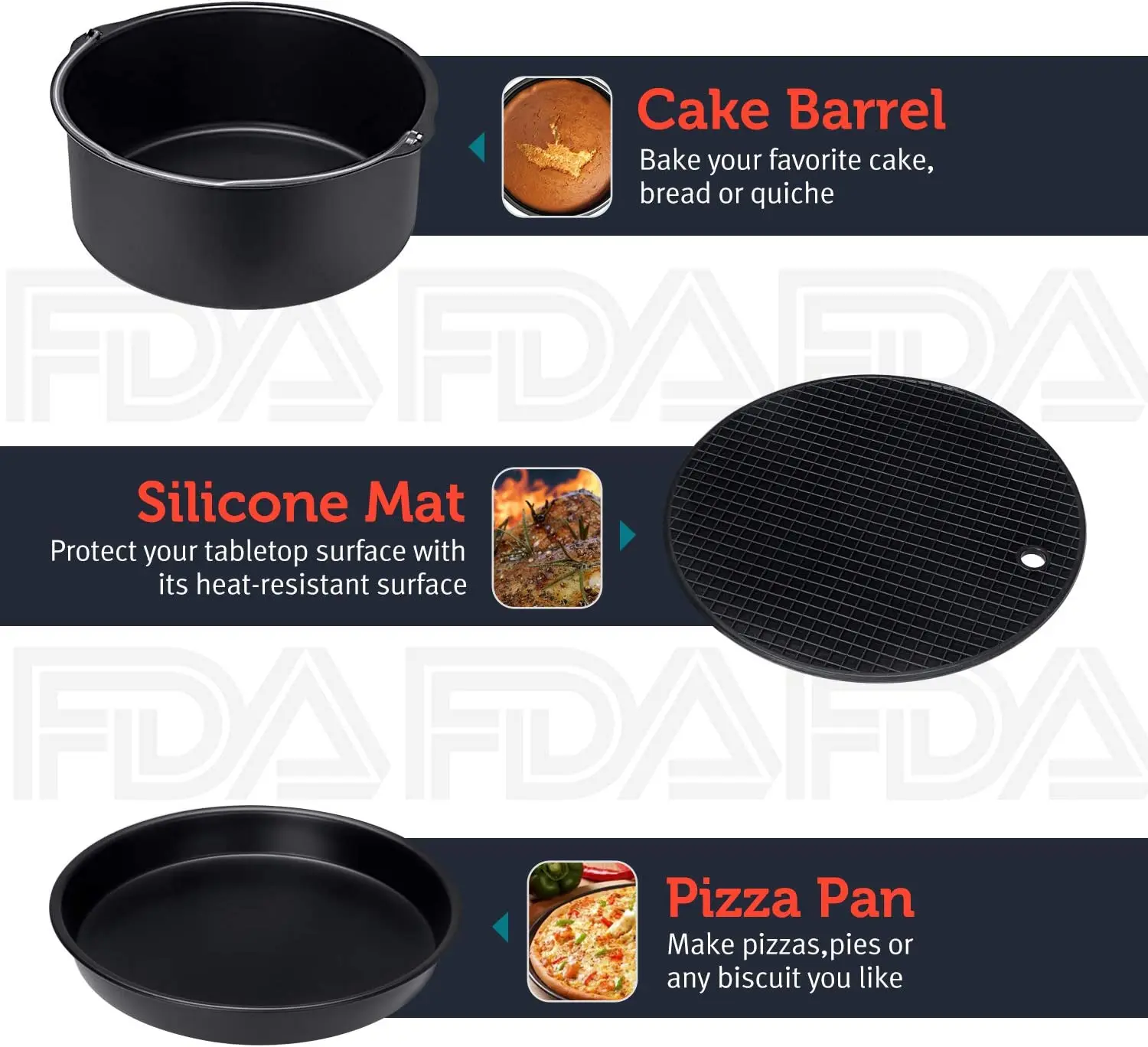 Yetaha 1PC Accessoires de Cuisson Friteuse à Air Chaud, Accessoire de Ninja Air Fryer Cake Barrel Universal Black Air Fryer Accessoires Plateau De Plat Air Fryer Accessoires idéaux --- C'est un accessoire idéal pour faire des desserts, des gâteaux et des pains moelleux et délicieux. Il dispose également d'une poignée pour permettre une maniabilité facile Universel --- Compatible avec la plupart des marques de friteuses à air de cuisine. Black Air Fryer Accessories Carbon Steel NonStick Cake Baking Tray for Deep Fryers 8 Inch. Brand: Unbranded; Colour: 7 Inch. €13.57. Save €24.83 (64%). RRP... Polyvalent --- Ustensile de cuisine, ce plat de cuisson est très approprié pour faire des gâteaux, du pain et d'autres plats délicieux, ainsi que pour cuisiner des ragoûts, des omelettes et d'autres plats. Accessoires idéaux --- C'est un accessoire idéal pour préparer des desserts, des gâteaux et des pains moelleux et délicieux.