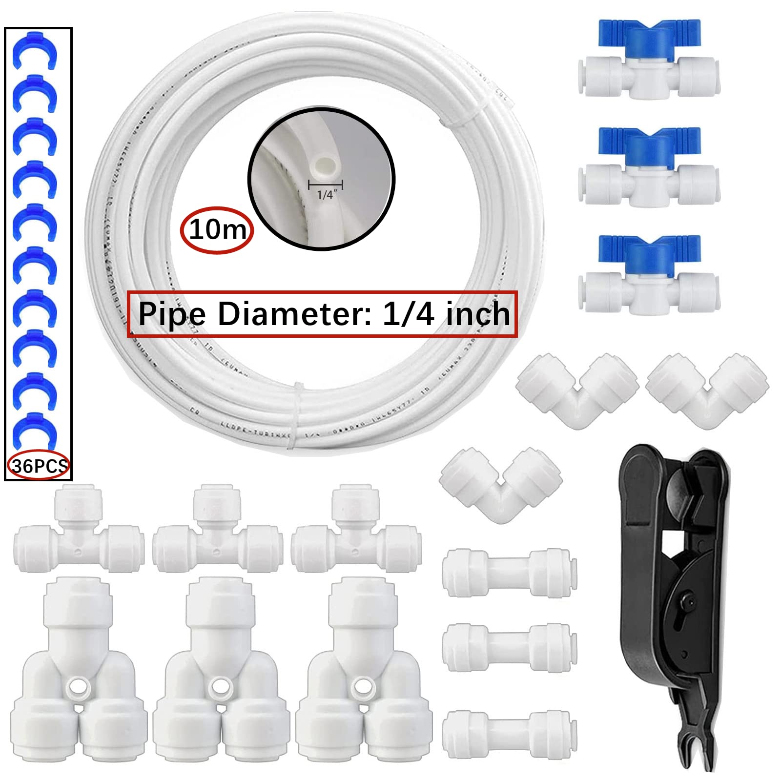 Raccord Frigo Americain HUAZIZ Kit De Raccordement Universel Blanc De 10 M, 14 Pièces RO, Pour Tuyau De Réfrigérateur De 3/8", Tuyau D'eau (type Y + T + I + L + Valve D'arrêt Tuyau Eau 3/8 10m TRAVAUX DE RACCORDEMENT DE CONDUITE 06/07/2023 - SEN'EAU HUAZIZ Kit de raccordement universel pour filtre à eau RO - 10 m - Pour tuyau de réfrigérateur 1/4 (type Y T I L valve d'arrêt) - Bleu marine... Le robinet utilise la technologie « push-fit », permettant un débranchement rapide et sans outils. Contenu de l’emballage: 1 coupe-tube bleu. 10 mètres de tuyau d’arrivée d’eau universel bleu de 9,53 mm. Description du produit: Matériau : Matériaux de qualité alimentaire., Couleur : Bleu. Installation facile : Les raccords rapides permettent une installation facile sans outils supplémentaires. Largement utilisé : Alimente en eau les réfrigérateurs, les systèmes de filtration par osmose inverse (OI), les sorbetières, les fontaines à eau, les humidificateurs, etc. Ce kit permet de raccorder des réfrigérateurs, des systèmes d'osmose inverse, des aquariums et divers filtres à eau côte à côte à l'alimentation en eau à l'aide d'un tuyau de 9,53 mm (3/8). Bricoleurs et installateurs, ce kit de 20m de tuyau d'eau avec raccords universels (1/4, 1/2, 3/4) est parfait pour connecter ton osmoseur, réfrigérateur...