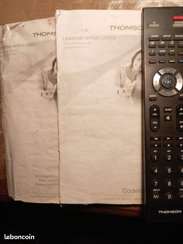 Télécommande Universelle 2 En 1 Zapper Roc Z107 (Télécommande, Zapper... Fonction d’apprentissage incluse pour mémoriser d’autres fonctions. Réglage du volume maître et du choix du programme maître : permet de sélectionner l’appareil qui commande le volume et le programme. Zapper Roc Z107 Stock Bureau - THOMSON Télécommande Universelle 2 En 1 ROC 2411 Noir Zapper ROC Z107 Infrarouge Télécommande universelle permettant de commander 2 appareils. Télécommande universelle permettant de commander 2 appareils. Préprogrammée pour de nombreuses marques (LG, Sony, Samsung, Sharp, Philips, ...). Fonction d’apprentissage incluse pour mémoriser d’autres fonctions. Grandes touches pour une utilisation plus facile Remplace parfaitement les télécommandes défectueuses ou perdues ou permet de préserver les télécommandes d’origine, avec de très grandes touches. Thomson d'Origine TV Télécommande/Remote Control ROC 4228