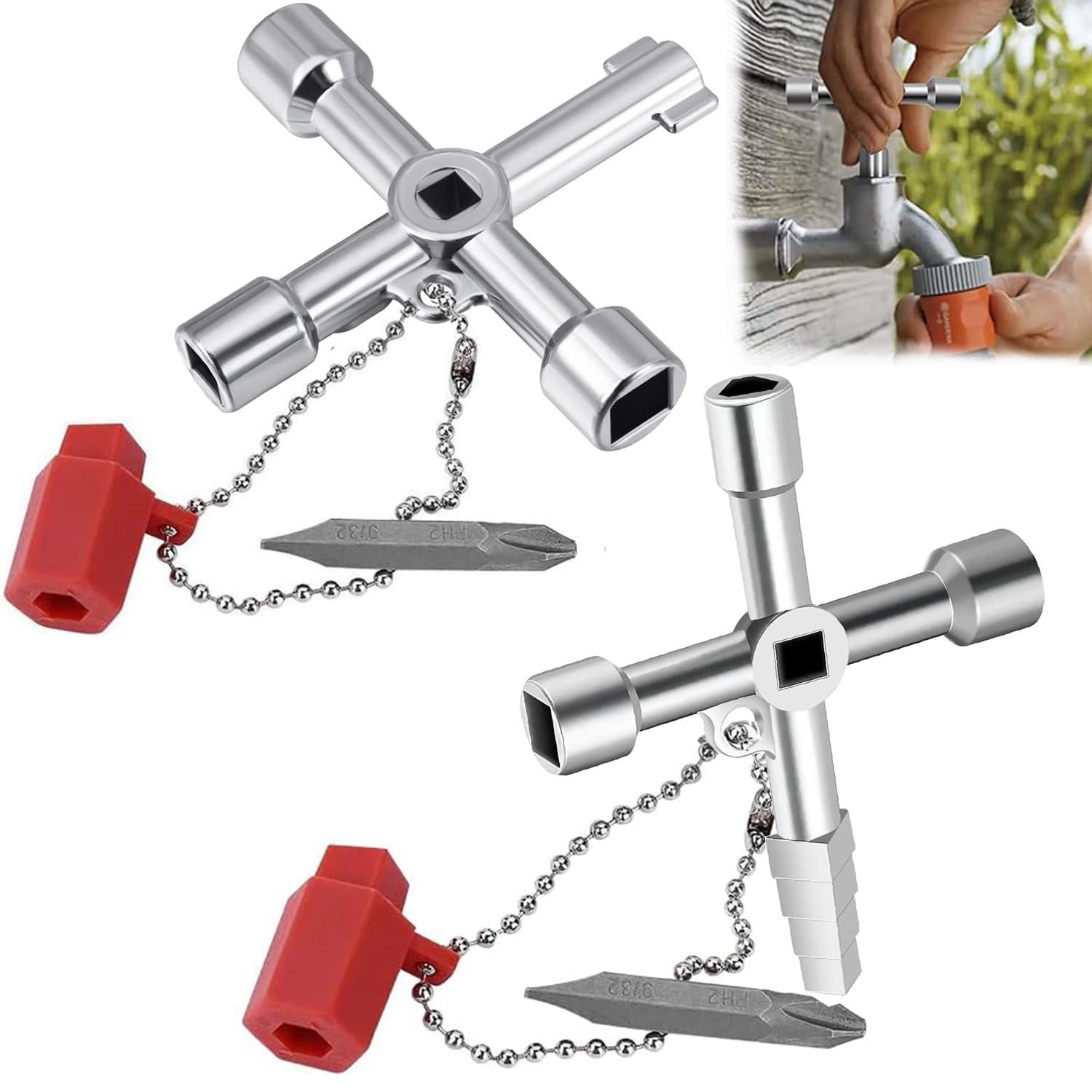 【Clé à molette quatre en un】:clé triangle poubelle Elle a également une conception en forme de croix et est équipée de quatre extrémités de spécifications différentes,qui conviennent aux interfaces de différentes tailles telles que 7,3 mm,8,3 mm et 10,5 mm. Vous pouvez l'emporter avec vous ou le mettre dans un sac,une trousse à outils ou une poche ou l'accrocher à un porte-clés,et l'utiliser quand vous le souhaitez,afin que les travaux de maintenance ne soient pas limités par le site. 【Large gamme d'utilisation】:Notre ensemble cle carre en deux pièces convient à l'entretien et au fonctionnement de diverses vannes telles que l'électricité,l'eau,le gaz,les trains,les armoires,les ascenseurs,les compteurs d'eau,les compteurs de gaz,les tuyaux de chauffage et autres équipements. Les deux se complètent et offrent une solution complète pour l'exploitation et la maintenance des compteurs d'eau,des vannes et autres équipements. Clé Triangulaire Universelle Multifonctions À 4 Voies Clés De La longueur totale est de 86,5 mm,ce qui est de taille modérée et facile à tenir et à utiliser. 【Emballage inclus】:Ceci cle triangle est un ensemble de deux,comprenant une clé triangulaire cinq en un en alliage de zinc et une clé multifonction quatre en un en acier allié avec un tournevis à double tête. 2 Pcs Clé Triangulaire 4 Voies Universelle Multifonction,Clé Triangle Poubelle,Clé Armoire Electrique,Clé Utilitaire Pour Boîtes Électriques,Gaz,Eau,Compteurs Électriques Et Armoires au meilleur prix - Comparez et achetez 2 Pcs Clé Triangulaire 4 Voies Universelle Multifonction,Clé Triangle Poubelle,Clé Armoire Electrique,Clé... La tête de tournevis incluse peut être utilisée pour le retrait et l'installation simples des vis,répondant aux besoin Nom du produit : cle triangle clé universelleLa réparation de la vanne du compteur d'eau est facile ! Il intègre plusieurs fonctions pratiques en une seule pour répondre à différents besoins de maintenance., C'est une bonne a Clé Multifonction Pour Compteur Eau 2PCS Clé En Croix Universelle Pour Armoires électriques | Leroy Merlin Clé Passe Partout Boite Aux Lettres Lot de 4 clés utilitaires pour radiateur, copteur, 4/7 voies... Utilisé pour ouvrir une variété de vannes de compteurs d'eau et d'équipements connexes.