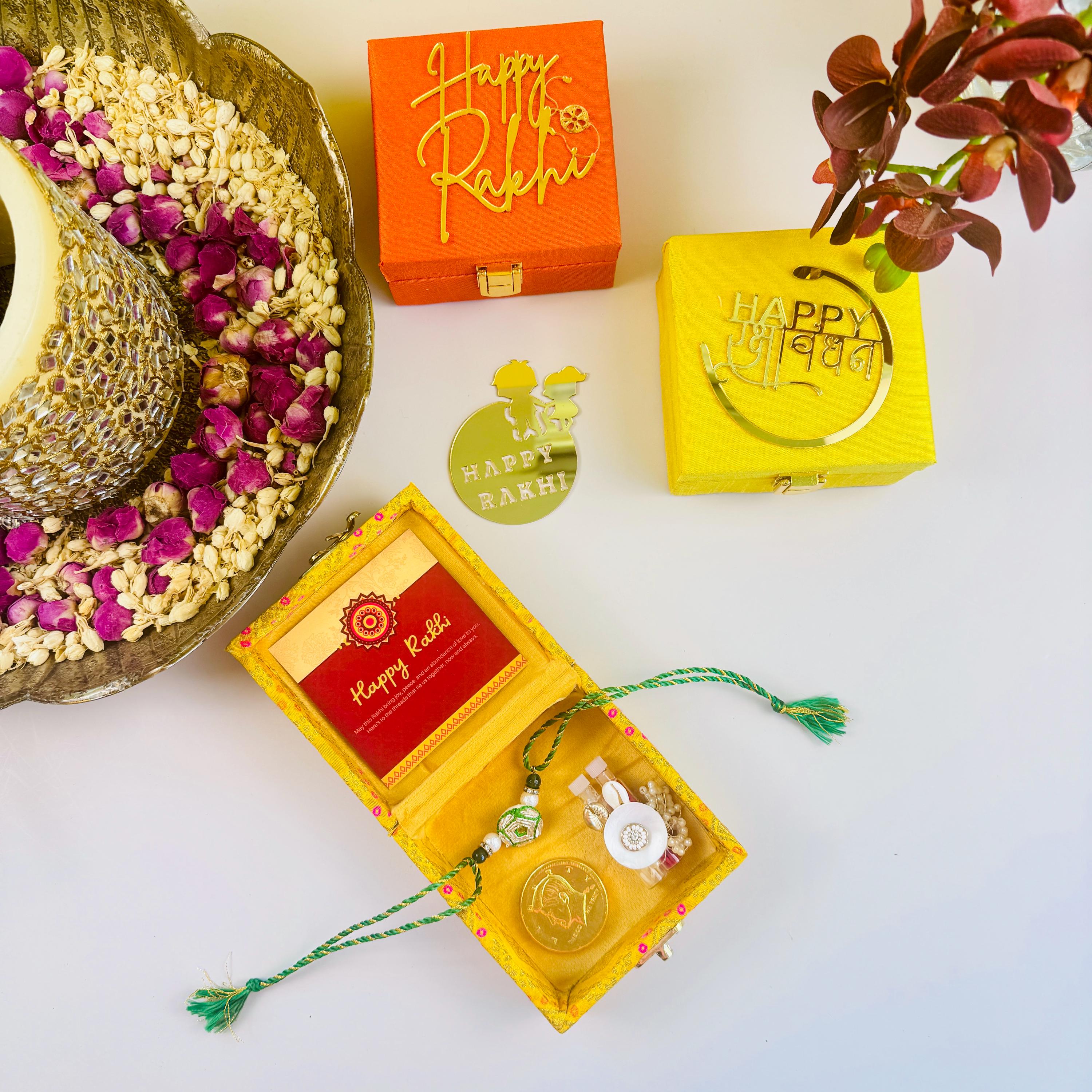 Acknowledge Your Love For Your Brother By Sending This Beautiful Combo With A Promise That Your Bond With Him Will Grow Stronger With Each Passing Moment. Gift Cards Send Rakhi Within Usa Set Of 2 Rakhi For Brother Rakhi Thread For Bhai Bhabhi Bhaiya And Bhatiji Veera Raksha Brother And Sister Bracelets Cadeau Frère Sœur Indien Traditionally It is celebrated by tying of a thread on the wrist of brother by his sister as a form of ritual protection. Modern Rakh Bracelet, Bhaya Bhabh Rakh, Handmade Rakhr, Raksha Bandhan Card, Rakh Par Send Love To Your Brother Via Aditri Creations and Gift you brother this wonderful, fabulous looking rakhi and gifts this Rakshabandhan and express your love in the most amazing way. This handcrafted rakhi helps to maintain the freshness of the holy relationship between brother and sister. Modern Rakh Bracelet, Bhaya Bhabh Rakh, Handmade Rakhr, Raksha Bandhan Card, Rakh Par... Thus what can be better than expressing it your loving brother by bringing a designer rakhi along with gifts for him this year. It is a Beautiful Ancient Festival Celebrated to Honor Boundless Sibling Love and Give Joy And happiness To Brother / Sister / Bhaiya / Bhabhi / Sister in law/ . Religious Elegant Rakhi Rakhee Made with love and Blessings from the artisan of India . 🌟 Handmade Rakhis are individually made so there could be minor variation. It is the festival of expressing the feelings of love. A wonderful Rakhi combo on this Raksha Bandhan.