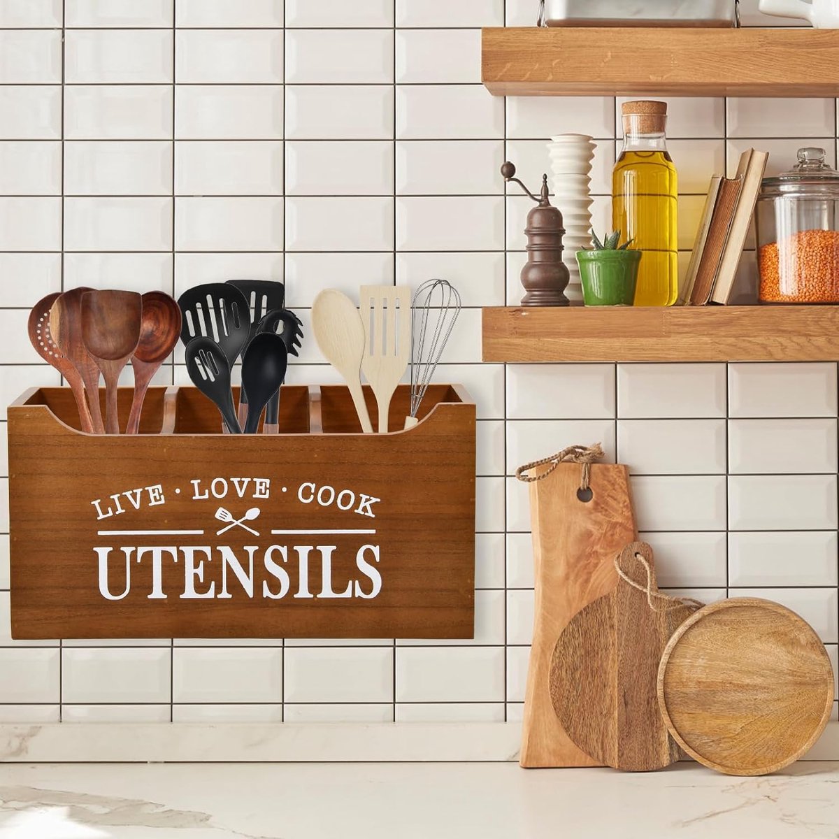 Porte Ustensiles Cuisine Organisateur Bois à 3 Compartiments, Rangement... Poignée de transport pratique: équipée d'une poignée en bois robuste, ce qui facilite le déplacement du support du comptoir à la table ou au lavabo, idéal pour les cuisines occupées ou la portion extérieure. Charme de design en bois rétro: fabriqué en bois naturel avec une finition d'inspiration rétro, ce porte-ustensile ajoute une élégance rustique et une chaleur à votre comptoir de cuisine tout en restant fonctionnel et élégant. Porte-ustensiles Cuisine Bois Porte Ustensiles Cordage Comptoir De Famille - Cosy Maison Porte-ustensiles Bois Trois compartiments spacieux: dispose de trois sections distinctes qui organisent soigneusement vos cuillères, spatules, fouet et autres outils de cuisine, les gardant debout et faciles à atteindre pendant la cuisson. 1.Grand porte-ustensiles : l'organisateur d'ustensiles en bois massif dispose de 3 compartiments pour que vous puissiez ranger tous vos ustensiles de cuisine facilement à portée de main Description: Organisez vos essentiels de cuisine avec style en utilisant ce support d'ustensile en bois rétro., ., Conçu avec trois compartiments spacieux, il fournit une solution bien rangée pour garder vos outils de cuisine comme des cuillères, des couches et des spatules verticales et facilement accessibles., ., Le charmant grain de bois vintage apporte une touche rustique à n'importe quel décor de cuisine, tandis que le trou de drainage intégré garantit que l'eau des ustensiles fraîchement lavés ne s'accumule pas au fond., ., Une poignée de transport robuste permet un transport sans effort du comptoir à la salle à manger ou à l'évier, ajoutant à sa commodité., ., Ce titulaire est non seulement attrayant mais aussi pratique - ses compartiments détachables facilitent le nettoyage et le séchage, donc il reste frais et sanitaire., ., Que vous soyez équipé d'une cuisine de ferme ou que vous souhaitiez simplement ajouter une touche organisée à votre espace, cet organisateur d'ustensiles en bois offre à la fois la fonction et le charme dans un accessoire polyvalent., ., Parfait pour une utilisation quotidienne ou comme cadeau réfléchi pour les cuisiniers à domicile et les amateurs de décoration., ., Fonctionnalités:., ., porte-ustensiles de cuisine., ., -Color: Gray., ., -Material: Wood., ., -Size: environ 10., 63x4., 13x6., 10inch., ., Remarque: Mesure manuelle, veuillez laisser de légères erreurs sur la taille., ., Les couleurs peuvent exister une légère différence en raison de différents écrans., ., Package comprenant 1 x porte-ustens de cuisine. Brouette à Fleurs Jardinière en Bois à Roues avec Poignée Réglable et