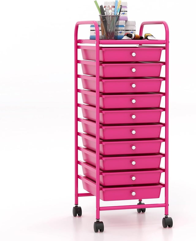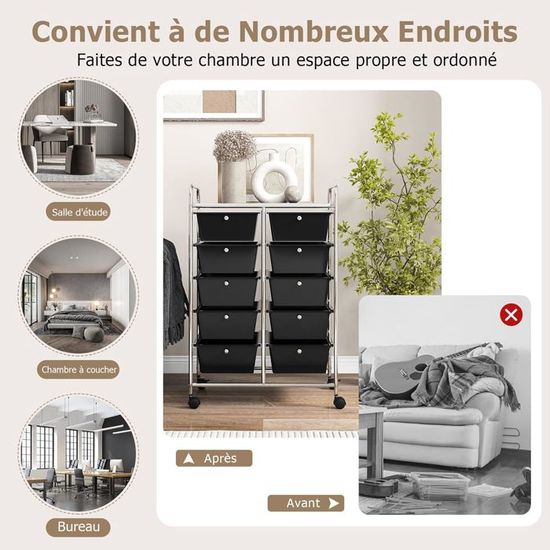 SYKIARIOL Chariot de rangement avec roulettes, chariot multi-usages sur roulettes avec plateau Espace de rangement polyvalent avec plan de travail en bois : le conteneur à roulettes SYKIARIOL avec tiroirs est équipé d'un plateau arrondi en bois qui empêche les objets de glisser et ajoute de l'élégance à votre espace Rangement Sykiariol Sykiariol Meuble SYKIARIOL Chariot Utilitaire Avec 14 Tiroirs, Chariot De Rangeent à Chariot Salle De Bain 8 Tiroirs Chariot Organisation Polyvalent Maison Rangement polyvalent avec plan de travail en bois : le coffre à roulettes SYKIARIOL avec tiroirs est équipé d'un plateau en bois arrondi qui empêche les objets de glisser et ajoute de l'élégance à votre pièce. Design élégant pour n'importe quelle pièce : le design élégant et les tiroirs en plastique vif font de ce chariot de bricolage un accessoire élégant pour n'importe quelle pièce. Avec 4 tiroirs spacieux (35,5x31,1x11,11 cm) et un plateau en bois sur le dessus. Sur roulettes (dont 2 avec frein), tu le déplaces partout - cuisine, salon... Les 10 tiroirs spacieux sont parfaits pour ranger des accessoires de bricolage, d'art et d'outils, des accessoires de couture, des décorations, des jouets scolaires et des jouets, des articles de bureau, des produits cosmétiques et plus encore. Dimensions des tiroirs (l x P x H) : 35,74 x 30,03 x 10,6 cm. En cas de problème, notre support client assure une expérience sans problème et en fait un choix fiable pour l'organisation quotidienne. L'échafaudage inoxydable assure la stabilité et le rend idéal pour une utilisation lourde dans les chambres d'enfants, les appartements d'étudiants ou les salles de bricolage.
