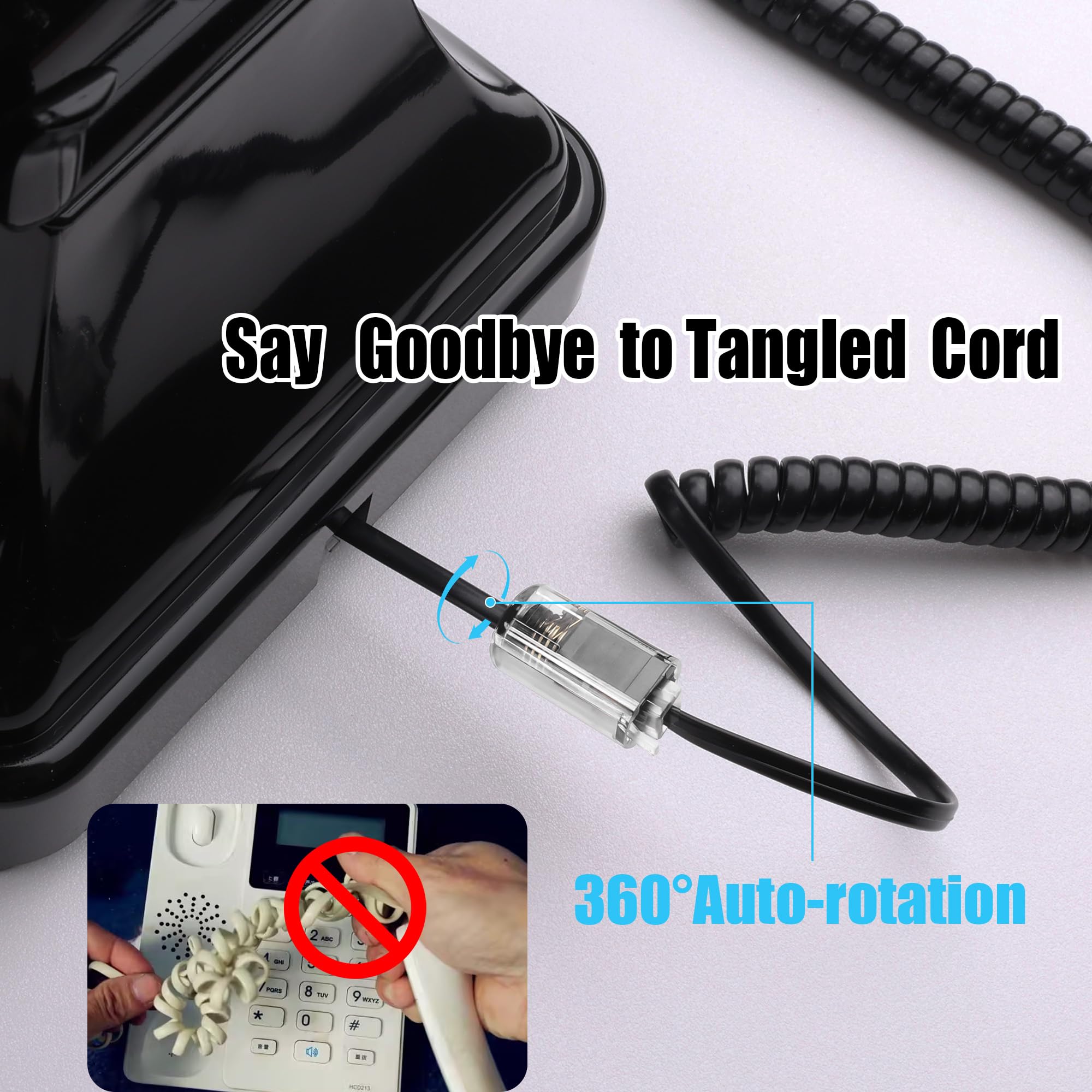 Dragon Trading Lot De 4 Cordons Rotatifs Pour Téléphone Fixe Le démêlant de ligne téléphonique pivote automatiquement à 360 degrés pour éviter que votre cordon de téléphone ne soit sali ; Boîtier en PVC transparent et insert ABS noir, qui sont beaux et Matériaux et contacts métalliques plaqués or pour une excellente connexion et un son exceptionnels Accessoire Téléphone Fixe Rj11 Uvital Lot De 4 Démêlants De Cordon Téléphonique Anti Démêleur Cordon Téléphone Empêche les câbles de s'emmêler. S'installe facilement sur le combiné sans outils 360 - Câble de Charge Magnétique - Chargeur de Téléphone Rotatif à 360... Fonctionne sur tous les modèles de combinés et de cordons de combinés pivote automatiquement avec le téléphone pour que les câbles ne s'emmêlent pas. Haute qualité et aucun outil nécessaire – Comprend des contacts en métal plaqué or pour garantir une excellente qualité sonore. Les contacts en métal plaqué or empêchent la perte de qualité du son. Le démêlage est tout aussi facile.