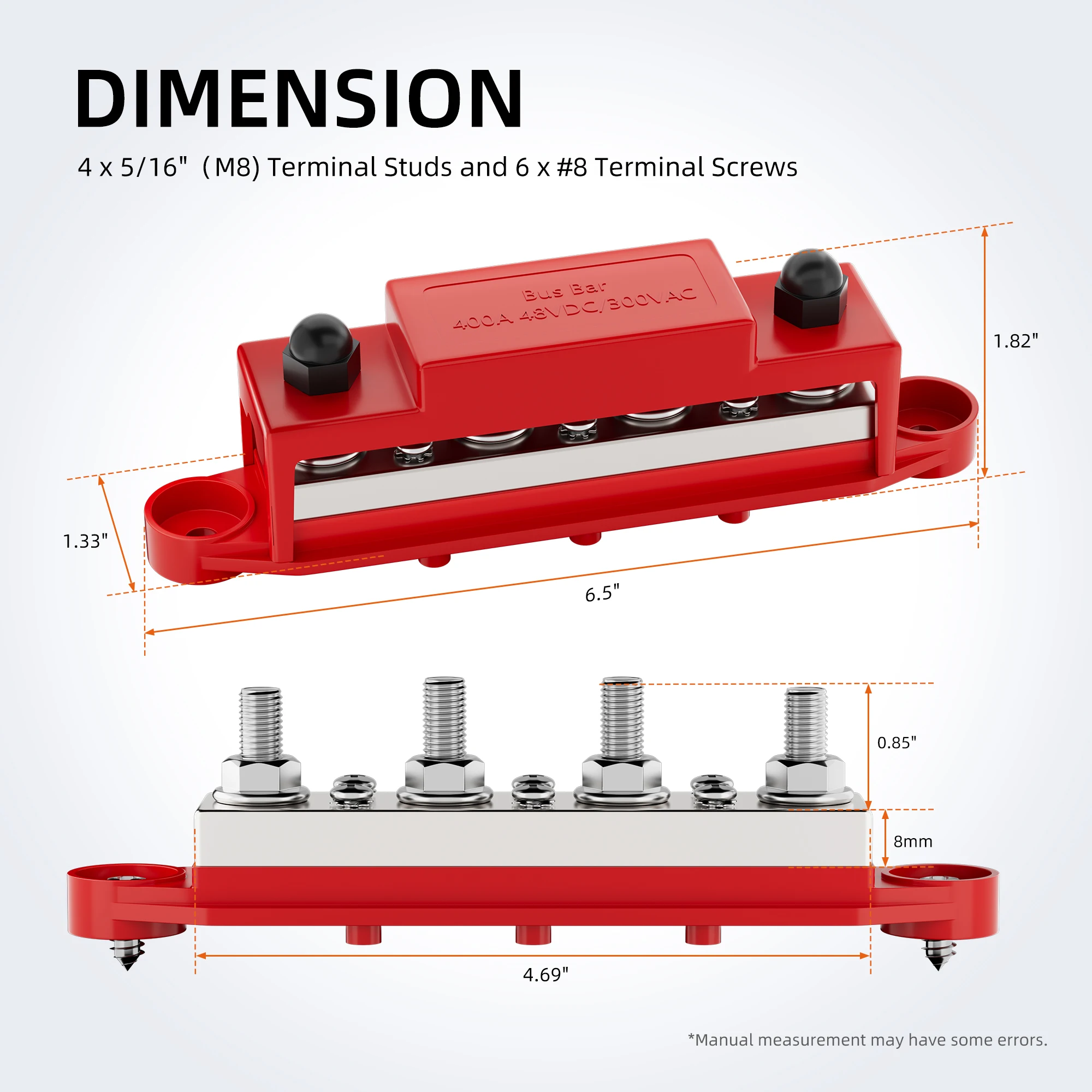 Courant nominal : 130 A AC/150 A CC. Ce matériau est robuste et durable et ne se déforme pas facilement. Performance stable : la tension nominale de ce répartiteur de terre couvert à une rangée est de 12 V, la tension maximale est de 300 V AC/48 V CC et le courant nominal de 130 A AC/150 A CC. Spécifications: Matériau : base en nylon, cuivre étamé, vis en acier inoxydable, couvercle en polycarbonate Couleur : noir., Tension nominale : 12 V. La performance stable et l'isolation sûre assurent un câblage plus sûr. Les bornes de raccordement et les écrous en acier nickelé améliorent la conductivité électrique et protègent contre la corrosion. Le retardateur de flamme et la bonne conductivité assurent une excellente résistance mécanique et durabilité Elle empêche les pièces métalliques d'entrer en contact avec quoi que ce soit, bloque autant de zones exposées que possible et réduit le risque de contact accidentel et de court-circuit Il est très pratique et pratique. CaracteristiquInoxydable et résistant à l'usure : les vis de serrage M4 et les boulons de serrage M6 du répartiteur de courant de rail de collecte 12 V sont en acier inoxydable avec une haute résistance à la rouille. Bloc Distribution électrique 12-48V 150A Barre De Distribution - 12 V-48 V CC 150 A Busbar 12P - Avec Alimentation Voiture Camping-car Barre De Distribution - 12 V-48 V CC - 150 A - Busbar - Bloc De Distribution - Avec Couvercle - 6 Boulons De Serrage M4 - 12 V - Pour Voiture, Camion, Bus... Couvercle de protection : chaque rail d'alimentation est livré avec un couvercle en PC et un écrou en nylon. Paramètres : barre omnidirectionnelle 12 V Plage de tension : DC 12-48 V/AC 110-300 V, taille du bornier : M4, puissance continue : 130 A AC/150 A DC, tension maximale : 300 V AC/48 V DC, répond à vos besoins d'intégration et de distribution d'électricité Dimensions : 121 x 20 x 42 mm Ouverture du trou de montage encastré : 5 mm. Large application : le bloc de distribution d'alimentation est largement utilisé pour les voitures, camping-cars, camions, yachts, bateaux, remorques, panneaux solaires et autres équipements industriels. Barre De Distribution 12 Volts Barre De Distribution - 12 V-48 V Ignifuge et bonne conductivité pour une excellente résistance mécanique et durabilité Des trous de fixation sont disponibles pour le montage et la fixation aux deux extrémités. Sûr et résistant à la poussière : le couvercle en polycarbonate transparent inclus dans le kit offre une protection supplémentaire à vos câbles et empêche efficacement les éclaboussures d'impuretés et de poussière et ainsi les accidents. Design à 6 bornes : cette boîte de barre de bus dispose de 6 bornes sur le dessus qui facilitent l'organisation et le nettoyage des câbles emmêlés.