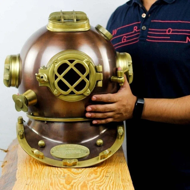 Cette pièce est conçue pour le marin en vous, avec son charme nautique et antique. Décoration Nautique Casque CASQUE DE PLONGÉE Us Navy Mark V Laiton Et Cuivre Réplique De Casque De Réplique Casque Plongée Métal Décoration Bureau | Présentoir d'accent de décoration nautique de grandes surfaces de style néo-classique. Corps de construction robuste | Superbe savoir-faire d'artisans indiens | Merveilleuse pièce de décoration nautique | Conception robuste entièrement solide | Transformez les coins vides de votre chambre, salle de bain, cuisine ou espace de travail, halls, zone de réception en espace d'accent décoratif avec ce décor contemporain qui complétera sûrement votre espace intérieur et ajoute une touche de nautique autour de lui. | Parfait pour les halls d'hôtel, les grands halls et couloirs, les halls, les réceptions, etc. Vous devrez le soumettre obligatoirement - uniquement si vous êtes d'accord avec cette clause, puis continuez à acheter notre produit en conséquence. CASQUE DE PLONGÉE vintage en laiton 18 US Navy Mark V Deep Sea Marine Il ajoute un éclat glorieux introuvable dans toutes les répliques de casque de plongée. Hauteur totale (de bas en haut) : 18 pouces (environ) | Contenu de l'emballage – 1 casque uniquement | Avertissement de précaution - En raison de la forme désorientée et des pièces saillantes, les dimensions peuvent varier légèrement. Il fait un excellent cadeau, une décoration impressionnante et sera admiré par tous ceux qui aiment la mer. Cela peut être cette excellente première impression pour vos invités qui les laissera bouche bée | L'utilisation comprend - Décoration de bureau et de surface pour le salon, la salle de bain, la chambre à coucher et la décoration de comptoir et d'étagère, etc. Nous expédions dans le monde entier depuis l'Inde | Option de cadeau idéale pour votre prochain anniversaire, Noël ou tout autre festival/occasion. CASQUE DE PLONGÉE sous-marine Mark V de la marine américaine, en... CASQUE DE PLONGÉE sous-marine Mark V jaune de Style Vintage en acier... Ce casque de plongée décoratif est l'accent parfait pour toute pièce à thème nautique. Ce casque de plongée est une réplique du casque de plongée en haute mer et est construit en métal solide et comporte des trous de visualisation, des rivets de casque et des répliques de loquets. Code UGS - B01AKCI7DY | Matériau - Laiton massif et cuivre + verre | C'est une belle idée de décoration pour améliorer vos espaces résidentiels et commerciaux | Un article vintage de collection indispensable pour un passionné de navigation et une personne aimant la mer. Ce magnifique casque substantiel constitue également un excellent cadeau pour les plongeurs, les plaisanciers et les fans de tout ce qui est Steampunk.
