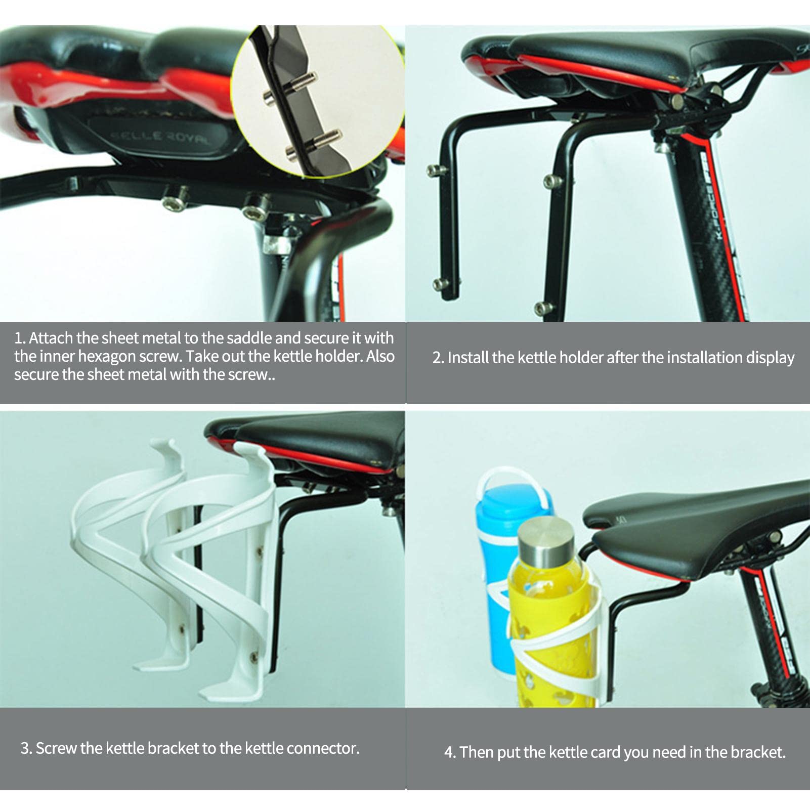 PORTE-BOUTEILLE D'EAU DE vélo fiable parfait pour les vélos de route et Matériaux : alliage d'aluminium + acier inoxydable. Fixation Sacoche De Selle Vélo ROCKBROS Sacoche De Selle De Vélo 1,5L Avec Porte Bouteille Sacoche De Stabilisateur Sacoche De Selle Caractéristiques : Nom : stabilisateur de sacoche/sacoche de vélo. Oubliez les compromis lorsque vous voyagez à vélo avec le support multifonctionnel Rockbros. Cet outil indispensable pour chaque cycliste vous permet de fixer deux porte-bidons et une sacoche de vélo, vous offrant ainsi la possibilité de ranger tout ce dont vous avez besoin sans sacrifier le confort et la légèreté Support de selle de vélo, double porte-bouteille, adaptateur porte... Utilisation : parfait pour les cyclistes qui cherchent à améliorer leurs accessoires de vélo ; ce stabilisateur est excellent pour les cyclistes occasionnels et les amateurs sérieux. Contenu du paquet : 1 queue de cheville., 1 base fixe., 2 longues vis., 2 joints., 4 vis courtes. [Emballage complet] Comprend tout le nécessaire pour l'installation : 1 contre-tête, 1 base fixe et diverses vis pour un processus d'assemblage simple. * Le support arrière du vélo peut contenir le sac arrière et la bouteille d'eau lorsque vous faites du vélo. Construction de qualité supérieure : fabriqué à partir d'alliage d'aluminium et d'acier inoxydable, il offre une durabilité contre l'usure tout en conservant un profil léger pour une manipulation facile. *Le support arrière de bouteille d'eau peut être utilisé comme pièce de rechange pour réparer l'accessoire ancien ou cassé du vélo.