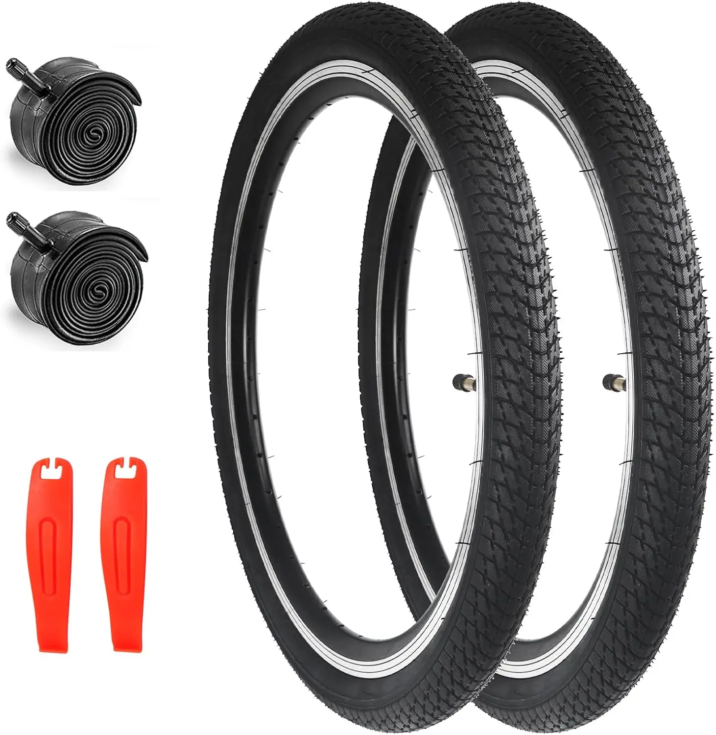 ZUKKA Lot de 2 pneus de vélo de montagne pliables de rechange 24/26/27 Pneu 20x1.75 ZUKKA Pneu De Vélo 20" 20 X 1,75 - Blanc - Pour VTT De 20" - Pour Enfant Et étudiant - Tricycle Velo 20 Pouces Fille Super durable : les pneus sont fabriqués en caoutchouc de haute qualité (30TPI), léger, fin et dense, avec une forte adhérence, une résistance à l'usure Convient pour ZUKKA Lot de 2 pneus de vélo de 50,8 cm - 20 x 1,75 - Blanc - Manteau 47-406 et 2 chambres à air de 50,8 cm - Pour VTT, vélo d'enfant, vélo d'étudiant, vélo de fille, tricycle Taille des pneus de vélo : 50,8 x 6,1 cm (64-406 mm) ; convient aux largeurs de pneus : 5,4 à 6,1 cm ; TPI : 40 P.S.I. (280 kpa) Charge maximale : 75 kg. Taille de la chambre à air de vélo : 20 x 2,125/2,4, valve AV 48 mm. Fabriqué en caoutchouc butyle, il a une bonne étanchéité à l'air, résistance à la chaleur et durabilité Super durable : les pneus sont fabriqués en caoutchouc de haute qualité (30TPI), léger, fin et dense, avec une forte adhérence, une résistance à l'usure Pliable : les pneus sont pliables et plus faciles à transporter et peuvent être rangés dans un sac comme pneu de rechange pour les voyages longue distance, pliez et remplacez les pneus de vélo avec un gonflage max de 20 x 1,75 à 35 P., S., I
