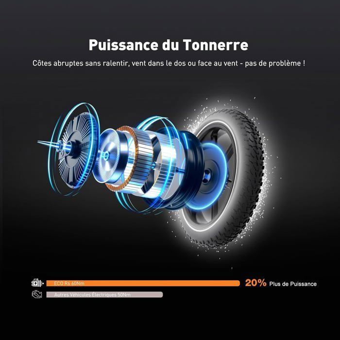 Test : ecorush Eco R1, vélo électrique tout-terrain puissant et performant 【Adaptabilité tout-terrain et confort de conduite】 Ce velo electrique est équipé de pneus larges antidérapants de 20 × 4 pouces, associés à un cadre robuste en alliage d’aluminium, conçu pour s’adapter à des terrains variés. Vélo Pliant 7 Vitesses écran LCD Vélo électrique Pliable, 16" Avec Batterie Amovible De 36 V 13 Ah, Portée Jusqu'à 50-100 Km, Welocité Maximale 25 Km/h Vélo électrique, Ebike Homme Et Femme Vélo Pliable Rangement Facile Il peut gravir sans difficulté des pentes jusqu’à 25° et s’adapte à de nombreux contextes d’utilisation, tels que les trajets quotidiens en ville ou les escapades en pleine nature, grâce à sa stabilité et à sa capacité tout-terrain La transmission à 7 vitesses vous permet de choisir librement la vitesse idéale, et les pneus élargis de 20 x 4,0 pouces s'adaptent à aux conditions routières les plus complexes Pneus 20×4,0 Pouces, Châssis Haute Résistance, Batterie De 48V 499.2Wh, 7 Vitesses, Écran LCD, VTT Électrique De 250W 25 Km/h Pour Hommes Et Femmes Velo Pliant... Idéal pour les déplacements urbains comme pour les sorties en extérieur Grâce à une fourche avant amortissante et à un coussin de selle réglable, il absorbe efficacement les vibrations et améliore considérablement le confort, que ce soit sur des chemins de campagne accidentés, en ville ou dans d’autres conditions Un service client réactif assure une assistance complète en cas de besoin, pour une utilisation sans souci 【Puissance et performances polyvalentes】 Ce vélo électrique est équipé d’un moteur brushless de 250 W et atteint une vitesse maximale de 25 km/h. Des feux avant et arrière lumineux améliorent la visibilité nocturne pour une conduite sûre 1 Écran LCD 2 Siège Confortable 3 Freins à Double Disque 4 Transmission
