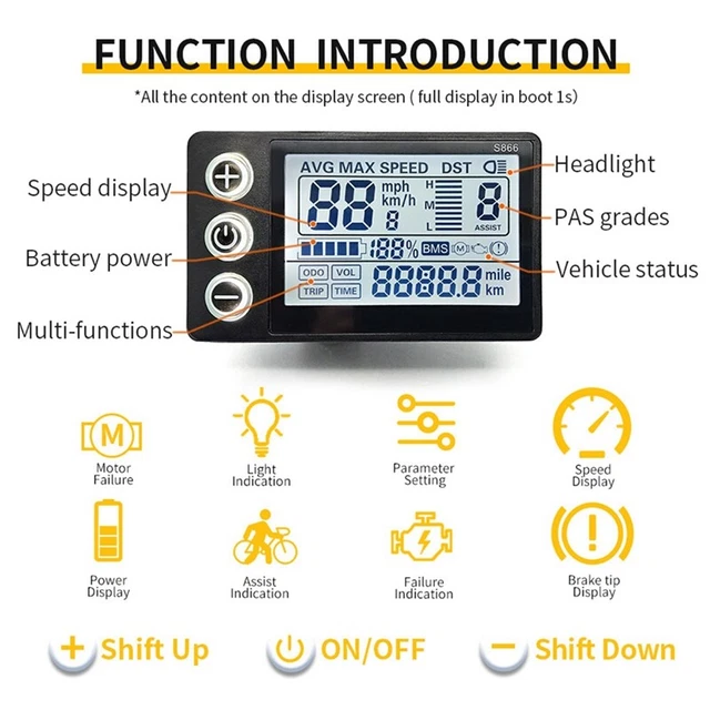 Compteur d'affichage LCD - ZERONE - Noir - Étanche - 22,2 mm - Pour vélo et scooter électrique Affichage du niveau de batterie] Compatible avec la tension 36 V et 48 V, fournit un affichage intelligent et précis de la puissance, un enregistrement en temps réel de la consommation d'énergie pour maintenir le kilométrage de conduite écran Données Vitesse Puissance Kilométrage PANNEAU DE COMMANDE étanche Vélo électrique écran LCD Pour Passion E Compteur LCD étanche Guidon 22.2mm 1., Affichage des données: l'écran LCD prend en charge le réglage de la luminosité du rétro-éclairage, et le contenu affiché par l'instrument comprend la puissance, le mode de conduite, la vitesse de conduite, le kilométrage unique, le kilométrage total, la faute du système de contrôle électronique, etc. Caractéristiques: Type d'article: Écran LCD C961 pour les vélos électriques Matériel: ABS, acrylique, silicone Poids brut: 235 g / 8,3 oz Taille du guidon applicable: 22,2 mm / 0,9 pouces Tension correspondante: 24 V 36 V 48 V Br degré de scellage: IP65 Type d'interface: interface étanche à 5 pins Moteurs compatibles: pour le moteur central BBS01 BBS02 BBSHD Mode d'emploi: Préparation avant de commencer: assurez-vous que le connecteur et le contrôleur sont fermement connectés et mettez le vélo électrique sous tension. Compteur d'affichage LCD - ZERONE - Noir - Étanche - 22,2 mm - Pour vélo et scooter électrique... Vous aider à vous tenir au courant de la dynamique de conduite., 2., Applications: L'écran LCD C961 convient au moteur BBSHD Central BBS01 BBS02., Installation simple et pratique, adaptée au guidon de 22,2 mm., 3., High materials: The Box/Cover is made of ABS material, the display window is made of transparent acrylic, the button is made of silicone and the ambient temperature of the entire instrument Cover is - 20 ℃ ℃ ℃ ‑ ‑ ‑ ‑ ‑ ‑ ℃ to ensure its mechanical ., ., 4., IP65 imperméabilisation: cet écran LCD a un index d'étanchéité IP65, une interface étanche à 5 broches, qui peut répondre à une utilisation quotidienne dans un environnement de pluie léger à modéré., 5., Tension compatible: l'écran LCD du vélo électrique C961 est compatible avec une tension de 24 V 36 V 48 V, facile à installer et à utiliser, avec des performances stables et fiables. Liste des packages: 1 x écran 1 x manuel [Performances fiables] - Compatible avec diverses tensions en fonction des différentes configurations de vélos électriques. [Facile à utiliser] - Interface conviviale de l'utilisateur et contrôles simples pour les tracas - Expérience de conduite.