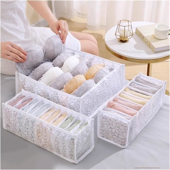 La taille du sac de rangement est de 32x12x12cm / 12., 6x4., 72x4., 72in, 36x25x20cm / 14., 17x9., 84x7., 87in, 36x17x12cm / 14., 17x6., 69x4., 72in. Organisateur de Tiroir à Vêtements, Boîte de Rangement en Maille... Il aide à organiser et à organiser soigneusement vos besoins quotidiens. Spécification: Matériel: Nylon Boîte de rangement pour chaussettes à 7 compartiments : 32 x12x12cm / 12,6x4,72x4,72in Boîte de rangement pour pantalons à 7 compartiments : 36x25x20cm / 14,1 x9,84x7,87in Boîte de rangement Legging avec 7 grilles : 36x17x12cm / 14., 17x6., 69x4., 72in Contenu du colis: 3 x boite de rangement pour vetement Remarques: En raison de la mesure manuelle, veuillez permettre un léger écart de mesure. Organisateur Tiroir Maille ENAIAH Organisateur De Tiroir à Vêtements, 2 Pièces Rangement Vêtements Organisateur Tiroir Vêtements Il est léger et facile à utiliser, et il est facile à transporter même en voyage. Description du produit 3Pcs Organisateur de Vetement pour Armoire, Boîte De Rangement à Tiroirs pour Faire l'Armoire Propre pour Chemise T-Shirt Pantalon sous-vêtements La boîte de rangement pliable est parfaite pour ranger des soutiens-gorge, des chaussettes, des sous-vêtements, des foulards, des ceintures, des cravates, des serviettes, des chemises, des pantalons de yoga, des leggings, des t-shirts, des petits sacs à main, des bracelets, des montres et d'autres accessoires. 【Haute Qualité】Matériau en nylon maillé, finition soignée, points doux, durable. 【Gagnez du temps et de l'espace】 La boîte de rangement en treillis visuel est pratique pour transporter des vêtements avec vous, ce qui améliore considérablement le taux d'utilisation des vêtements. L'organisateur de tiroir est facile à entretenir, il vous suffit de l'essuyer avec un chiffon humide et de le sécher à l'air. Forte Praticité Le sac de rangement à 3Pcs 7 compartiments peut répondre à tous vos besoins de rangement et résoudre la plupart de vos problèmes quotidiens de rangement de vêtements. 【Grande Capacité】Vous recevrez 3Pcs 7 compartiments boites de rangement vetements, pouvant ranger jeans, chemises, chaussettes, culottes, leggings etc. Véritables colonnes de rangement, les étagères à suspendre se fixent à la tringle de votre penderie et vous permettent de stocker chaussures, pulls, tee-shirts si vous manquez d’étagères Transparent et Visible Une grille, un objet, transparent et visible, vous pouvez l'utiliser pour trouver l'objet rapidement et facilement. Il y a plusieurs compartiments pour trier et organiser vos affaires et garder votre espace de vie organisé. 2 x Boîte de rangement à compartiments en Denim , tiroir à vêtements, boîte de