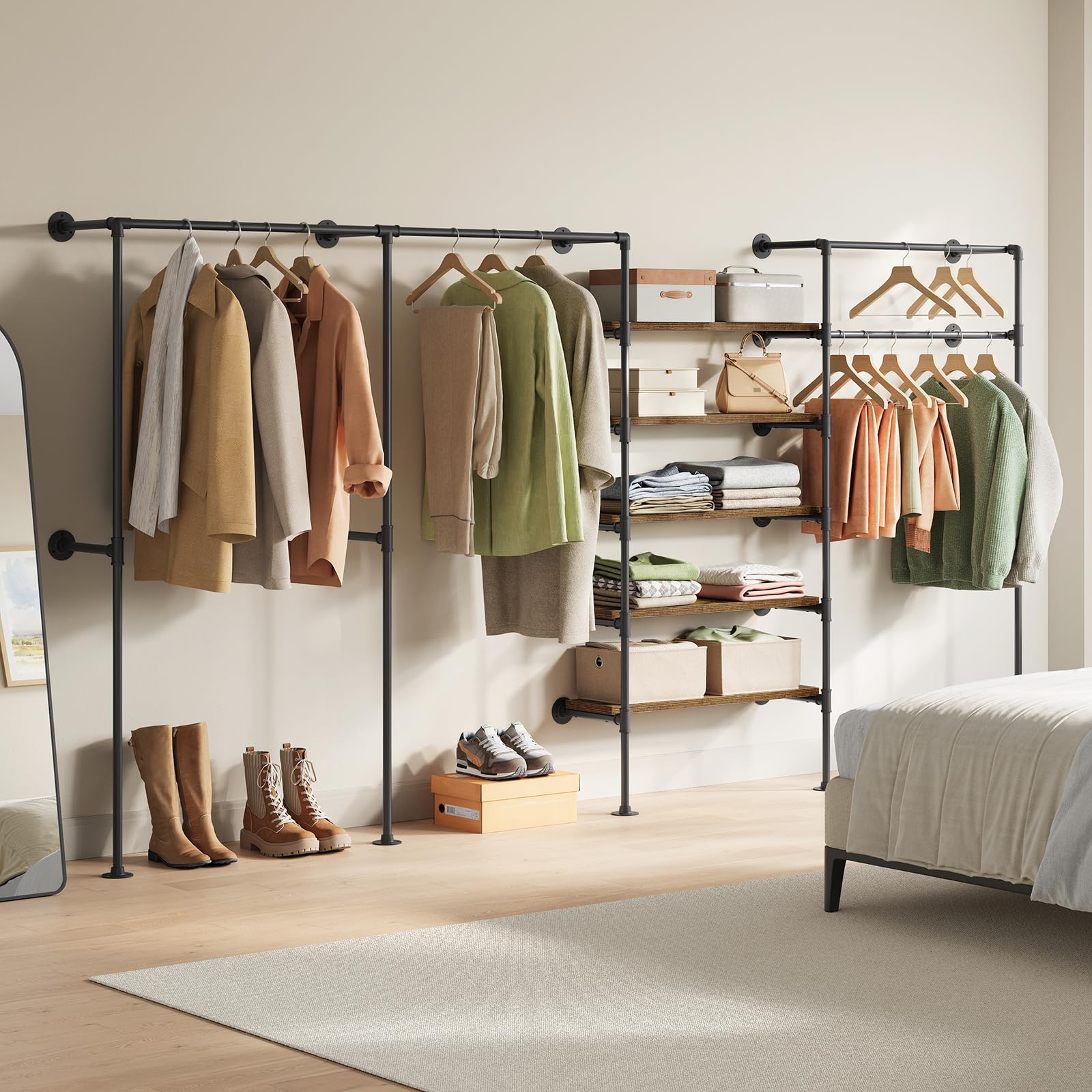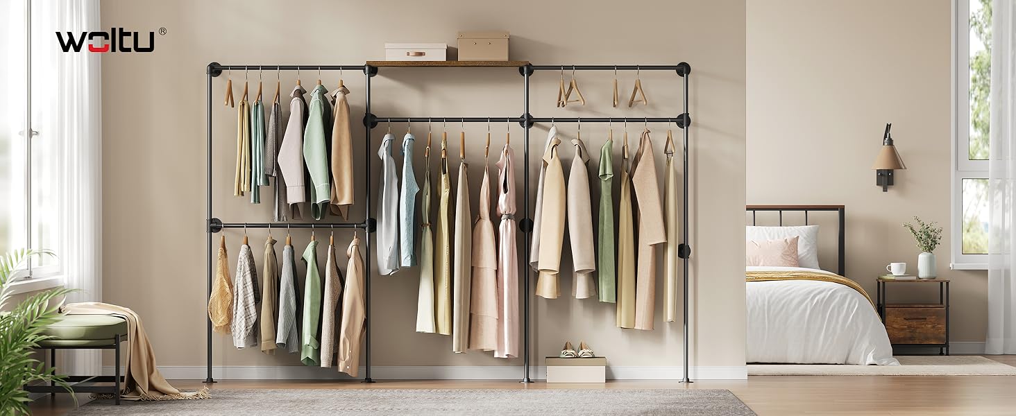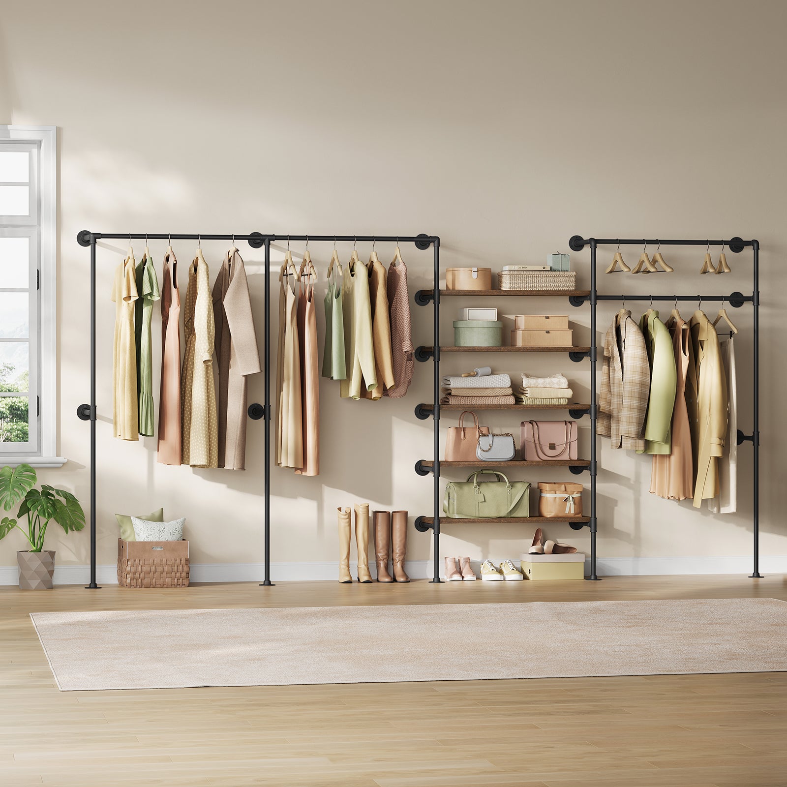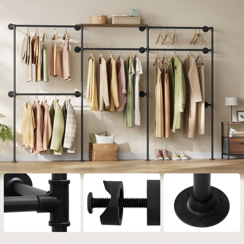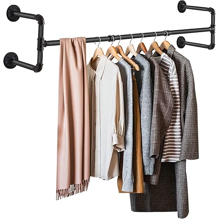 STRUCTURE ROBUSTE : Le portant vêtements mural est fabriqué en tubes métalliques revêtus de poudre de haute qualité et en panneaux de particules avec placage mélaminé. Il peut servir de portemanteau à l'entrée, de porte vêtements dans le salon ou le magasin, ou de penderie ouverte dans la chambre. Dressing Penderie WOLTU Penderie Murale, Portant à Vêtements, Dressing Mural, En Dressing Design Industriel Portant à Vêtements Design Contemporain - 2 Barres, Étagère - Bois... Spécifications Matériaux : Panneau de particules + Métal + Plastique Couleur : Noir + Marron rustique Dimensions totales : 192,5 x 33,5 x 186cm (L x P x H) Capacité de charge : Chaque rail - 30kg; Chaque étagère -25kg Dans le colis : 1 x Porte-vêtements mural, 1 x Kit d'accessoires, 1 x Manuel d'utilisation, Attention : 1., Les données du produit sont mesurées à la main, il peut y avoir une erreur de 1 à 2 cm., 2., La couleur des images peut être légèrement différente de la couleur réelle en raison des différents paramètres du moniteur et de l'écran. En panneaux de particules de haute qualité avec placage mélaminé, l'étagère est résistante aux rayures, à l'eau et facile à nettoyer. Remarque : il est nécessaire de percer le mur. Veuillez noter qu'il est nécessaire de percer le mur, tandis que le perçage du sol est optionnel pour plus de stabilité RANGEMENT ORGANISÉ & ACCÈS FACILE : WOLTU penderie murale a 3 rails de suspension à différentes hauteurs pour vous permettre de suspendre facilement les vêtements et de les garder bien rangés, ce qui facilite le choix de vos tenues quotidiennes. Recouverts d'un revêtement en poudre, les tuyaux en métal sont solides, durables, résistants à la rouille et faciles à nettoyer. Capacité de charge : 30 kg/rail, 25 kg/étagère Grâce aux accessoires et aux instructions fournis, ce dressing peut être facilement fixé au mur. Grâce au design mural, ce porte vêtements permet d'économiser de l'espace, de maximiser l'espace mural pour ranger les différents types de vêtements. Grâce aux accessoires et aux instructions fournis, ce dressing peut être facilement fixé au mur L'étagère supérieure empêche l'accumulation de poussière sur les vêtements suspendus en dessous et peut également être utilisée pour ranger des chapeaux ou des oreillers STYLE INDUSTRIEL VINTAGE : Les tuyaux noirs combinés au panneau en bois marron rustique apportent une ambiance vintage et industrielle à toute pièce dans laquelle vous choisissez de placer le porte-vêtements métallique - que ce soit le salon, la chambre à coucher, le dressing ou le studio - tout en servant de portant à vêtements parfait Il est robuste, durable et facile à connecter aux tubes métalliques. Portant à Vêtements Design Contemporain - 2 Barres, Étagère - Bois