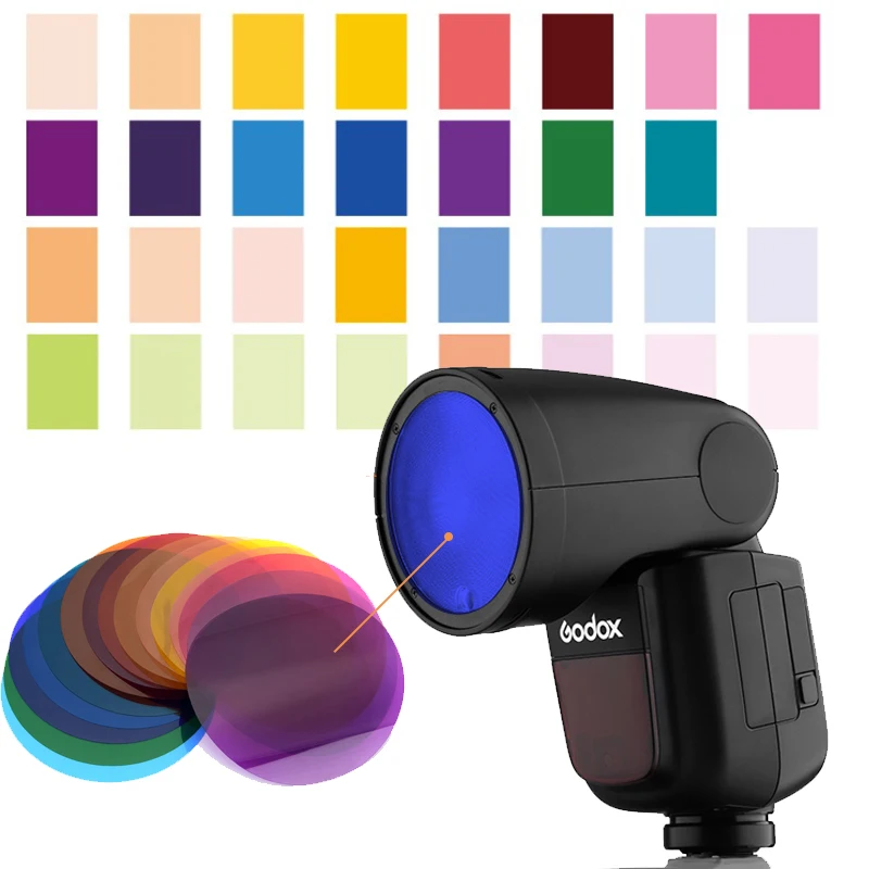 Godox Ensemble de gel d'ajustement de la température de couleur V-11T | La Boutique Godox V-11C Juego de 30 Accesorios de Filtro de Color para Godox AK-R1 Godox S-R1 Flash Godox V1... Effets Couleur Photographie Godox Kit Gélatine Coloré V1 V-11C Pour Godox V1 Adaptateur S-R1 Godox Dale un toque de color a tu luz con estos geles artísticos; Incluye 30 filtros de 15 colores diferentes: ¡Variedad! Compatible con Godox AK-R1 o AK-R16... L'ensemble comprend : Bastard Amber, Straw, Light Amber, Light Flame, Golden Amber, Light Red, No Color Pink, Middle Rose, Light Rose Purple, Surprise Pink, No Color Blue, Daylight Blue, Primary Blue, Moss Green et filtres bleu-vert. Fabriqué pour Godox V1, H200R et clignotants avec adaptateur S-R1, le kit d'effets de couleur pour têtes de flash rondes contient deux des 15 filtres en gel créatifs chacun.