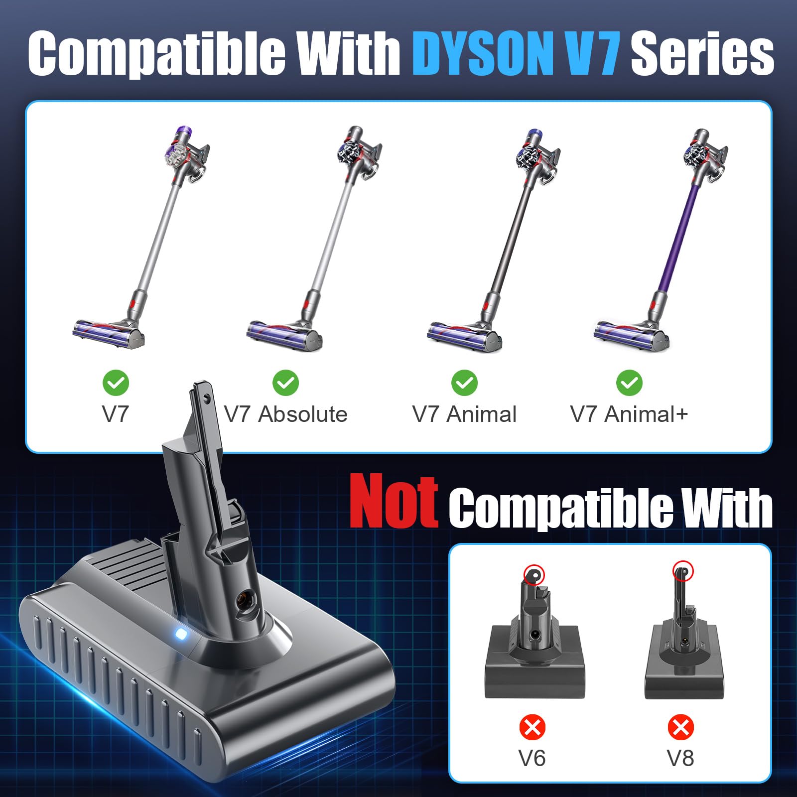 Batterie de Replaceent V7 pour Batterie Dyson V7 SV11 V7 Anial V7... 🔋【ERSATZ POUR DYSON V7 AKKU ORIGINAL】Type de batterie : batterie lithium-ion., Capacité : 6000 mAh. 😺【HAUTE QUALITÉ】Le V7 Akku utilise les hautes températures de sécurité, sicher mit Schnellladetechnologie, während sie Überlastschutz, Überstromschutz, Kurzschlussschutz, Hightemperaturschutz bietet, um sicherzustellen, dass Sie den Staubsauger sicher verwenden können. Batterie Lithium-ion Pour Dyson V10 Batterie De Rechange 25,2 V SV12 Pour Aspirateur Sans Fil Dyson V10 Batterie Aspirateur Dyson 6000mAh Le V7 Akku est plus long, donc votre Staubsauger plus long fonctionne, et il peut aussi réduire la charge, ce qui fait que la charge de la batterie est plus longue. Pièce détachée pour aspirateur 🔔【KOMPATIBEL MIT DYSON V7 STAUBSAUGER】L'Akku V7 pour Dyson est confirmé comme étant l'original de l'Akku Dyson V7., Parfaitement compatible avec Dyson V7 Animal, Animal Pro +, Absolute, Fluffy, Car + Boat, Mattress, Motorhead, Motorhead Pro, Allergy, Wireless, Trigger, Trigger avec HEPA, Extra, HEPA, SV11, 968670, 229687 etc. V7 Batterie de remplacement 6000mAh SV11 Batterie pour Dyson
