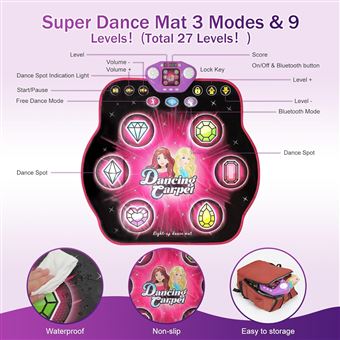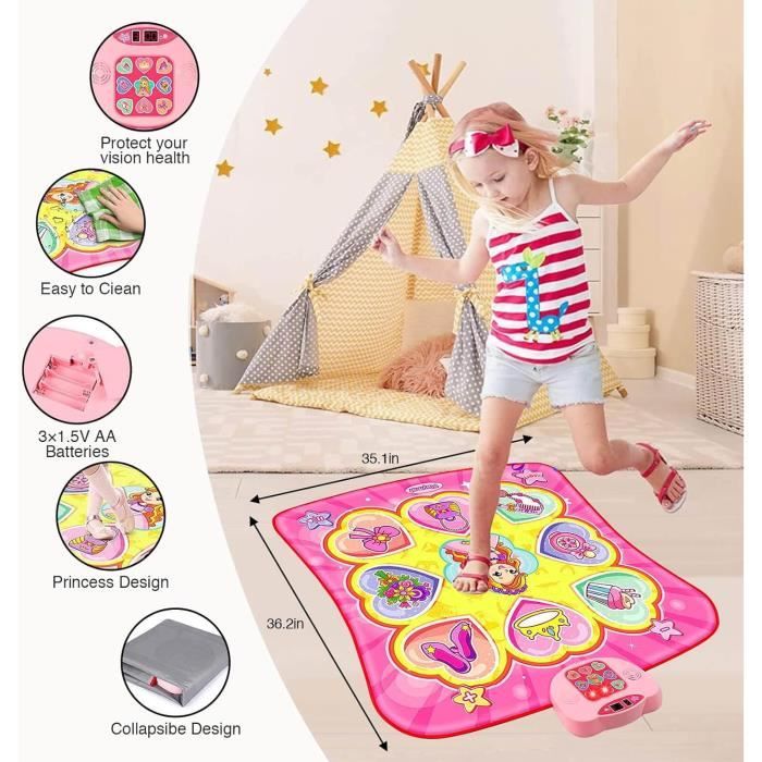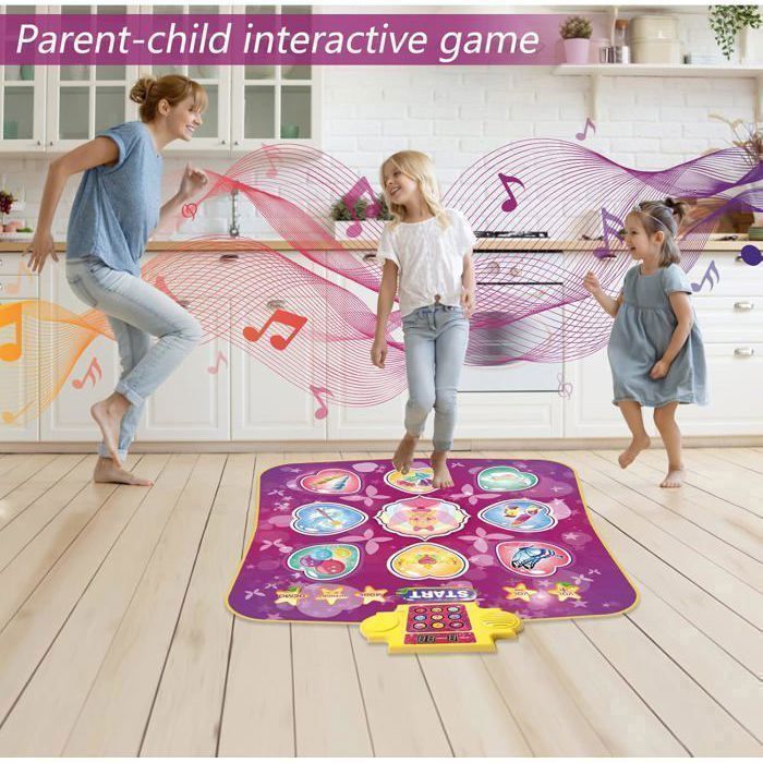 Tapis Musical Whack-a-Mole, Tapis Musical 3 en 1 pour Enfants ③DEMO 2 Danse libre : Le tapis de danse jouera 8 chansons différentes à la suite, permettant aux enfants de danser librement. Taille 33 5x40 5 Pouces VATOS Tapis De Danse Pour Filles - 4 Modes De Jeu Et 9 Niveaux De Défi Avec Volume Réglable, Lumière LED Et Bluetooth - Tapis De Musique Cadeau D'anniversaire Pour Les Enfants Tapis Danse Avec Musique Intégrée Neuf boutons interactifs s'illuminent grâce à des lumières LED qui scintillent à chaque pas, créant ainsi un décor sous-marin féérique immersif qui stimule l'imagination et la curiosité des enfants. KENLUMO Tapis Musical Bébé, Tapis de Danse Enfant, 8 Sons d’Animaux... Avec 8 flèches lumineuses qui s'allument en rythme, 8 modes de jeu et 3 niveaux de difficulté, ça promet des heures de fun. Connexion Bluetooth pour danser sur... Se plie facilement, ne prend pas de place, durable et facile à transporter, vous pouvez profiter des jeux de danse avec vos enfants à l'intérieur ou à l'extérieur ! Après 60 secondes d'inactivité, l'appareil passe en mode veille. Remarque : nécessite 4 piles AA (non incluses). ) avec des images vives et des couleurs douces et fraîches. Non toxique et inodore, sûr et durable, il peut être utilisé pieds nus ou avec des chaussettes, à l'intérieur comme à l'extérieur, offrant ainsi un environnement de jeu sûr. Tapis de danse: Inspiré par l'océan, ce tapis danse enfant un motif représentant une sirène et des éléments de la mer profonde (étoiles de mer, coquillages, coraux, perles, baguettes magiques, etc.