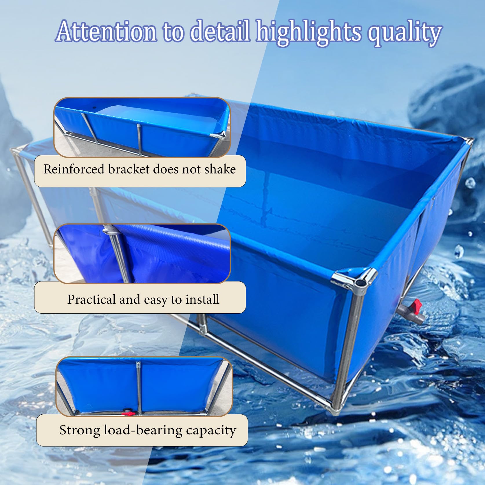 Construction en toile PVC durable : cette piscine hors sol est fabriquée à partir de 3 couches de PVC haute densité, résistant aux déchirures... Résistant à la déchirure : Hynbdes une toile fabriquée à partir de fil de polyester haute ténacité offre un matériau solidement extensible et résistant à la déchirure, quelle que soit la façon dont elle est tirée. Durable : Hynbdes la bâche est faite d'un tissu imperméable épais enduit de PVC, anti-âge, antistatique, résistant au soleil, résistant aux déchirures, facile à plier, durable et peut être utilisée pendant plus de 6 à 10 ans. Bac étang Poissons Support Acier VENUX Baignoire Pliable Portable Pour Adultes - Baignoire à Glace Au Bassin étang Poissons Rectangulaire L'utilisation de deux couches offre une meilleure protection contre les crevaisons et garantit également qu'il s'agit d'un matériau étanche. HYNBDES Piscine rectangulaire: acheter en ligne. Top-Marques prix bas dernières tendances Résistant à l'eau : Hynbdes deux couches offrent une protection double ! Revêtement d'étang de poissons noir, 4 tailles... - Grandado