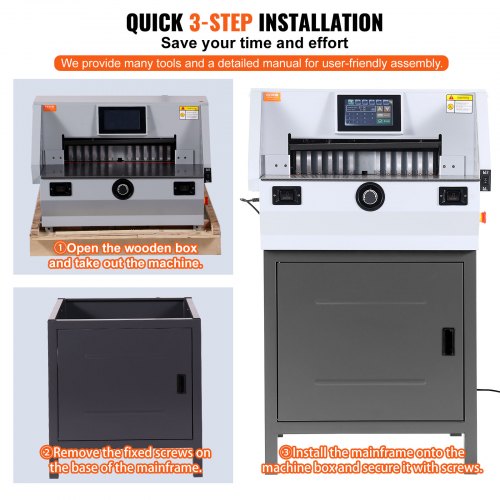 Coupe-papier électrique de bureau Précis, durable et pratique Ce massicot de table de haute qualité coupe sans effort des centaines de feuilles de papier standard en un seul passage. Pratique et durable : le panneau de commande améliore le confort d'utilisation. Largeur de coupe : 330,2 mm/13 pouces Massicot A4 VEVOR Massicot Électrique Largeur De Coupe 660,4 Mm Épaisseur 80 Mm Massicot Sécurité Infrarouge Il facilite les micro-ajustements précis. Profondeur de coupe : 40 mm/1,57 pouce Un bouton de pression du papier externe et indépendant, situé sur le côté droit, simplifie l'utilisation. Installez notre massicot électrique dans un espace plat et spacieux. Suivre attentivement les instructions de remplacement des lames lors du remplacement. Coupe-papier – Découpe de précision pour chaque projet Taille du produit : 595 x 605 x 390 mm/23,42 x 23,82 x 15,35 pouces Installation rapide : Des outils complets et des instructions détaillées sont fournis pour un montage et une utilisation faciles. Les lames tranchantes de qualité supérieure coupent sans effort du papier jusqu'à 38 mm d'épaisseur. Outre le papier ordinaire, il peut également couper le cuir souple, à l'exception du carton gris et des feuilles de plastique PVC VEVOR Massicot A3 Coupe Papier Épaisseur 3,8cm Guillotine de Papier... De plus, la machine de découpe de papier Deskyop est dotée d'un système de détection de sécurité infrarouge : si un objet est détecté dans la zone de découpe, la découpe s'arrête, assurant ainsi une utilisation sereine. Ne jamais démonter le capot de sécurité infrarouge. De plus, un système de découpe à double touche nécessite d'appuyer simultanément des deux mains sur le bouton de coupe pour lancer la découpe Profitez d'une découpe fluide et sans bords Protection de sécurité multicouche Pour assurer la sécurité de fonctionnement, nous avons intégré des capteurs infrarouges de chaque côté, qui arrêtent le coupe-papier électrique dès la détection de corps étrangers. La découpe du papier à double touche, avec des puces de haute qualité, assure une longue durée de vie. Des lames et des tiges de coupe de rechange asurent une durée de vie prolongée. Maintenir le massicot propre, à l'abri du soleil et du vent. Directives d'utilisation Lire attentivement le manuel avant utilisation. Mesures de sécurité renforcées : Pour assurer la sécurité de fonctionnement, la machine de découpe de papier de bureau est équipée de capteurs infrarouges qui arrêtent immédiatement le fonctionnement en cas de détection de corps étrangers. Découpe de haute précision Plusieurs fonctionnalités assurent une précision de coupe de ± 0,3 mm. Il peut également couper le cuir souple et les livres, à l'exception du carton gris et des feuilles de plastique PVC. Toujours couper l'alimentation avant d'introduire les mains ou des objets dans la zone de coupe. 1 x cordon d'alimentation, 1 x trousse à outils Ouvrez la caisse en bois, retirez le boîtier de la machine, dévissez les vis de fixation de la base du châssis, fixez le châssis au boîtier et fixez-le avec des vis. Vevor Massicot Professionnel A4 Coupe Papier Acier Sécurité Guillotine...