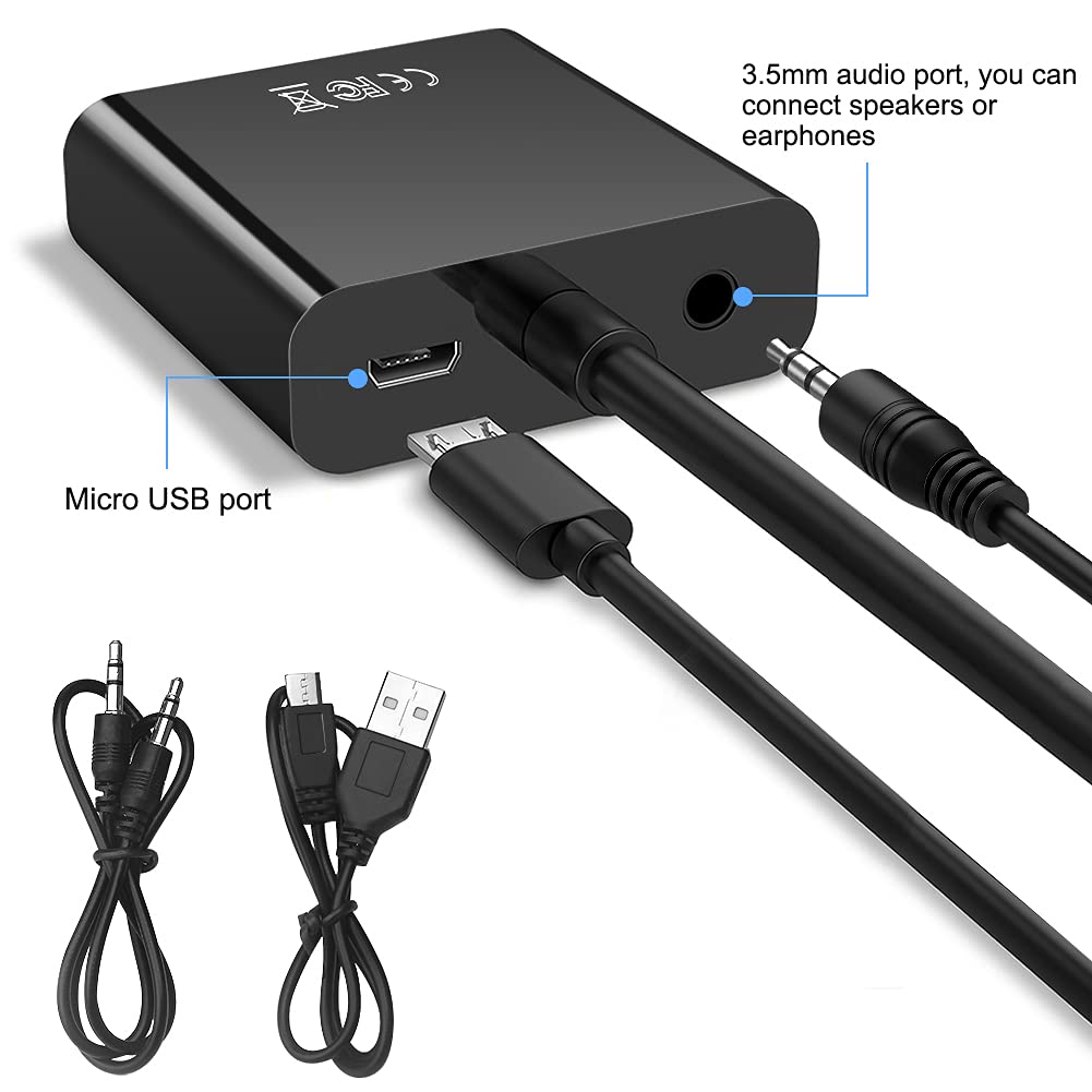Adaptateur HDMI vers VGA - Black - Convertisseur 1080P - Audio et vidéo Remarque : il ne s'agit pas d'un convertisseur bidirectionnel, il prend uniquement en charge les signaux numériques HDMI vers VGA analogiques Adaptateur Wii Hdmi QTMMC Adaptateur HDMI Vers VGA Avec Câble Audio Jack 3,5 Mm Compatible Avec Moniteur, Ordinateur Portable, Projecteur, HDTV Chromebook Et Plus (entrée HDMI Mâle, Sortie VGA Femelle, Port Audio 3,5 Mm Convertisseur Hdmi Vga Avec Audio 3.5mm L'adaptateur HDMI mâle vers VGA femelle peut être utilisé sans installer de pilote. Adaptateur HDMI vers VGA, Compact plaqué Or HDMI vers VGA (mâle vers... L'adaptateur/convertisseur HDMI® vers VGA HD2VGAE2 convertit activement la source vidéo HDMI de votre ordinateur portable, de bureau ou ultrabook pour la... Plug and Play : l'adaptateur HDMI mâle vers VGA femelle peut être utilisé sans installer de pilote. HDMI vers VGA : adaptateur HDMI vers VGA avec prise audio pour convertir les signaux numériques HDMI en signaux analogiques VGA, port audio 3,5 mm pour envoyer de l'audio au haut-parleur ou au moniteur Remarque : ce n'est pas un convertisseur bidirectionnel, il ne prend en charge que les signaux numériques HDMI vers VGA analogique Cet adaptateur HDMI vers VGA prend en charge les téléviseurs HD, les moniteurs et les projecteurs avec des résolutions allant jusqu'à 1920 x 1080, y compris 720p et 160., 120 x 120 00., Provides a visual experience in 1080p full HD plug and play. Qualité supérieure : le connecteur plaqué or du convertisseur HDMI vers VGA dispose d'une puce IC avancée intégrée qui offre une performance de signal stable et une résistance à la corrosion, assurant une transmission audio et vidéo parfaite La connexion plaquée or du convertisseur HDMI vers VGA a une puce IC avancée intégrée, qui offre une puissance de signal stable et une performance de signal à la corrosion et une résistance à la corrosion et assure une transmission audio et vidéo parfaite., Compatibilité universelle.