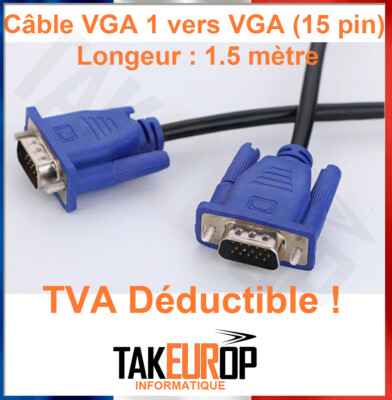 Longueur : 2 metres; Connecteur 1 : VGA mâle 15 broches; Connecteur 2 : VGA mâle 15 broches; Couleur : Noir; Veuillez noter que nos câbles sont conçus pour... Câble VGA 2m - WENTRONIC 68310 - Connecteur VGA (D-Sub) - Beige · Câble VGA Wentronic CAK XGA SVGA 1000 15M/15M Noir 10m · Câble VGA Wentronic - CAK XGA SVGA 180V... Cable Ecran Pc Male / Male Pour Ecran PC Moniteur TFT Vidéo Projecteur DB15 Câble Vga PLASTRON 45x45 VGA FEMELLE AVEC CORDON MÂLE 15 METRES