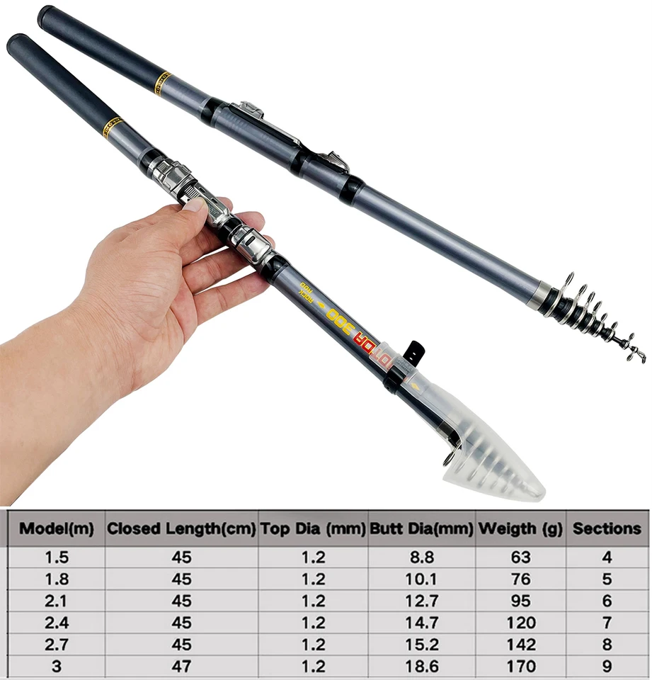 Télescopique Canne À Pêche Spinning Casting Canne À Pêche Ultra-Léger Si vous cherchez une excellente canne à pêche télescopique en fibre de carbone vendue avec tout le nécessaire, ce kit Fishoaky est fait pour vous. Adapté à la fois en eau douce et en eau salée, il s’agit d’un kit à offrir et à s’offrir Matériel Pêche Nomade VGEBY Canne à Pêche En Carbone Mini Canne à Poisson De Pêche En Mer Cadeau Pêcheur Ceci est une canne à pêche portable télescopique en fibre de carboneLéger et portable: facile et pratique à ranger dans le coffre d'une voiture, dans la trappe d'un bateau ou dans votre sac à dos. Matériel: Fabriqué en fibre de carbone de haute qualité, antirouille, super légère, canne à pêche super résistante, ce qui rend la pêche plus efficace. CANNE A PECHE Canne à pêche télescopique et combiné kit de Canne à... Matériel: fibre de carboneListe des paquets:1 pc * canne à pêche La canne à pêche télescopique est facile à transporter et la conception de longueur fermée est facile à transporter. Informations sur la taille du produit: 2,1 / 2,4 / 2,7 / 3,0 / 3,6 (m) C'est un joli cadeau de Noël / anniversaire pour les enfants ou les adultes qui aiment la pêche, ils peuvent passer le week-end en famille, faire de la randonnée, de la randonnée ou des voyages!