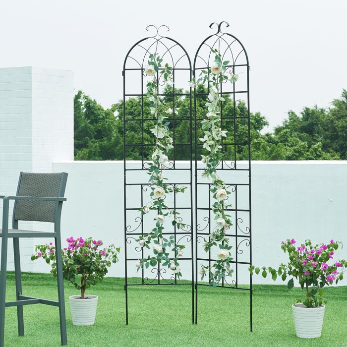 * Support polyvalent pour plantes : cette grille de jardin en métal sert de cadre parfait pour une variété de plantes grimpantes, y compris les roses, les pois de senteur, les tomates, les fruits et les fleurs. Caractéristiques : * Nom du produit : treillis en rotin d'escalade. La structure métallique tendance se marie parfaitement avec n'importe quel style de jardin, améliorant la beauté naturelle des espaces extérieurs. * Esthétique : nos grilles de jardin servent non seulement à soutenir les plantes, mais elles contribuent également à la beauté de l'environnement environnant. * Nombre de pièces : 1 treillis d'escalade en rotin. Compatibilité : conforme à l'image. Treillis Grimpant Rotin Métallique VGEBY Treillis Grimpant Pour Plantes Grimpantes Support De Plantes En Support Concombre Treillis Grimpantes Extérieur | Rosier grimpant en Jardin - Tour Jardin réglable d'intérieur en Grâce à sa structure métallique ferme, un entretien minimal est nécessaire, vous permettant de profiter facilement de votre jardin sans tracas. Il devient un superbe point focal, améliorant la beauté des plantes et rehaussant la décoration générale du jardin. 【Construction】: fabriqué avec une structure solide en plastique et en tube de fer, notre obélisque de jardin est conçu pour résister aux conditions extérieures, offrant un soutien fiable pour les plantes. Nous proposons une large gamme de treillages en bois ou métal, dont certains sont fabriqués en ance, de manière artisanale. Nos jardinières équipés de treillis pourraient vous intéresser en proposant des bacs jardinière juste sous les treillages Il suffit de le placer dans la position souhaitée et de regarder vos plantes grimpantes prospérer. Il devient un superbe point focal, améliorant la beauté du jardin et rehaussant la décoration générale. Contenu de l'emballage : 2 anneaux intérieurs., 4 piliers inférieurs., 1 fleur supérieure., 8 piliers centraux. Cadre de treillis grimpant pour plantes, support de culture de plantes... Il offre suffisamment d'espace pour grandir et s'épanouir, assurant qu'ils prospèrent dans les espaces extérieurs. Il suffit de le placer dans la position souhaitée et de regarder vos plantes prospérer. * Installation et entretien faciles : l'installation de notre grille obélisque est sans effort.