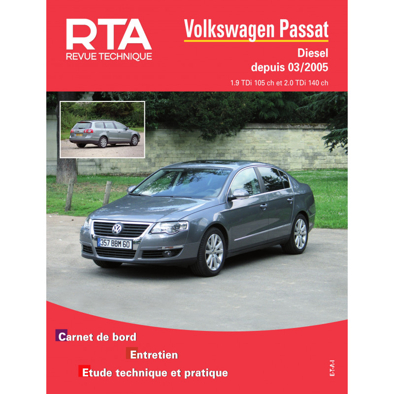 E.T.A.I - Revue Technique Automobile B781.5 - VOLKSWAGEN PASSAT VI - 36 - 2010 à 2015 Broché – 1 mai 2014 RTA B781.5 VOLKSWAGEN PASSAT VI (36) (2010 à 2014) Cette revue traite spécifiquement les 4 portes et breaks. À part les spécificités liées à la carrosserie (feux arrière par exemple), cette revue couvre aussi les CC (Comfort-Coupé FICHE TECHNIQUE AUTOMOBILE VOLKSWAGEN PASSAT ET SANTANA 1,9 L RTA RENAULT SCENIC IV Monospace 5 portes (2016 > 2022