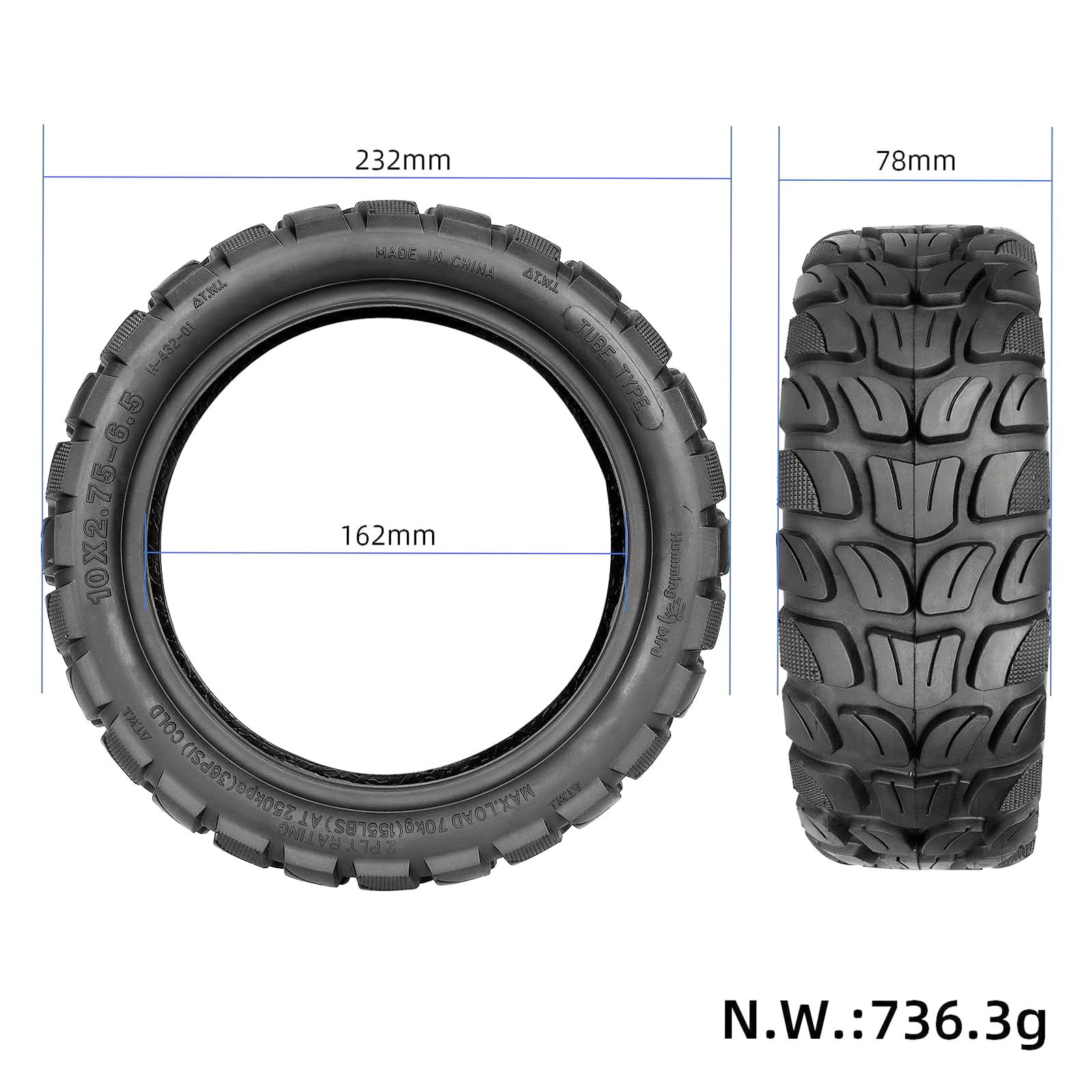 【Voyagez en toute sécurité】Plus facile de contrôler le scooter même dans les climats pluvieux ou enneigés et vous offre une sécurité maximale. Assurez-vous que cela ne vous dérange pas avant d'acheter. Pneu Tubeless 10x2.75-6.5 VOLOHAS 10x2,75-6,5/10x2,7-6,5 Pneu Sans Chambre à Air Pour KuKirin G3//Speedway 5/Dualtron 3/Kugoo G Booster/Hitway H5 Trottinette électrique Pneu De Remplacement Anti-Dérapant Kukirin G2 Master VOLOHAS Lot de 2 pneus de rechange, 10 x 2,7-6,5/10 x 2,75-6,5, pour scooter électrique KuKirin G3/Kukirin G2 Master (2025)/Smartgyro... 【Conception professionnelle】Pneus sans chambre à air, spécialement conçus pour remplacer les roues avant ou arrière originales de 10 pouces pour les scooters électriques Kugoo G-Booster/G2 Pro/Smartgyro Speedway, Speedway Pro, Speedway 5, Smartgyro Crossover Dual Cruiser, Hiboy Max3 , Dualtron 3, Hover-1 Alpha, Evercross H5, Emove Cruiser, Gotrax G4, Hitway H5/H5 Pro/HB24/HB24 Pro. Antidéflagrant et résistant à la pression, il peut être utilisé longtemps. - Par rapport aux pneus pleins et aux boyaux, ce pneu tout-terrain a une meilleure capacité d'amortissement et une meilleure résistance aux chocs, plus d'antidérapance, un diamètre extérieur plus grand et une bonne absorption des chocs, beaucoup plus facile de traverser les nids de poule. 【Des caractéristiques exceptionnelles】Comparé au pneu à chambre à air interne + externe, le pneu sans chambre à air est plus pratique à installer et à utiliser, résistant à l'usure et à la perforation. La largeur de la bande de roulement du pneu est de 77 mm et la zone de contact avec le sol est de 2 mm plus large que les pneus ordinaires. Ce qui réduit les vibrations et rend la conduite agréable. 【Gomme souple hautement élastique】Fabriqué à partir de caoutchouc souple naturel de haute qualité, son élasticité est meilleure que celle du caoutchouc dur. - Aucune réparation nécessaire, empêche l'éclatement du pneu et a une bonne résistance aux chocs et un bon amortissement, facile à installer. Pneu Kukirin G2 Master Rendez l'expérience de conduite plus confortable. Le pneu de roue de scooter offre une grande résistance à la déchirure, aux rayures et aux chocs, à la perforation, il est durable et prolonge la durée de vie des pneus. - Profil profond, plus antidérapant, meilleur drainage, grande absorption des chocs, léger, durable, élasticité modérée. Pneu sous vide sans chambre à air 10x2.75-6.5 pour Scooter électrique