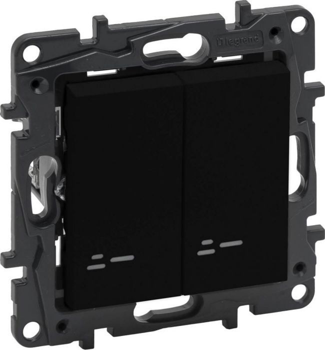Interrupteur Design Moderne Sécurité Enfant Interrupteur Ou Va-et-vient Témoin 10AX 250V Plexo Composable Anthracite - 069802L - Legrand Cache Prise Legrand Frontal Niloé Step para base de corriente 2P+T, aluminio LEGRAND 864320 Double interrupteur ou va-et-vient 10AX ou poussoir 10A Plexo... Vous avez besoin d'un cadre Niloé Step., Couleur : anthracite. Montage avec crochet ou vis. UNE GAMME ÉLÉGANT : 3 total look subtil et élégant (blanc, aluminium et anthracite) avec des lignes droites modernes. L'interrupteur ou commutateur double composable de la gamme Niloé Step est destiné aux installations encastrées. INSTALLATION SIMPLE ET RAPIDE : La gamme est équipée de bornes automatiques, de plus d'espace pour le câblage et de griffes intégrées pour faciliter l'installation. LEGRAND, 150 ans d'innovation. Les piliers : simplifier la vie, assurer le confort et la sécurité, promouvoir l'efficacité énergétique. Peut être installé en encastré (dans boîte d'encastrement) ou en saillie (sur cadre saillie) - Livré avec support permettant un rattrapage angulaire (-13°/ 11°) : facilite la mise à niveau du mécanisme lorsque la boîte n'est pas parfaitement horizontale