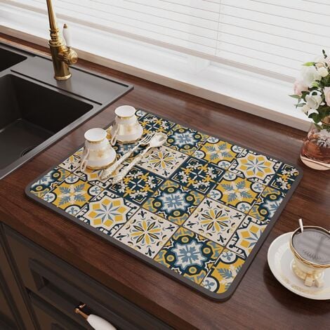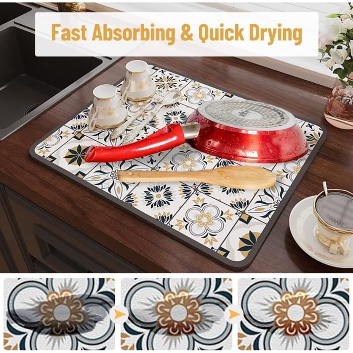 Tapis De Séchage,Tapis Égouttoir De Vaisselle Imprimé De Fleurs De... Tapis Égouttoir à Vaisselle Tapis de Séchage à Vaisselle Super... Grand Egouttoir Vaisselle Tapis De Séchage Pour Vaisselle En Eucalyptus Vert Sauge - Réversible, Extra Grand 18x24 Pouces - Idéal Pour Égouttage De Comptoir De Cuisine Tapis Séchage Vaisselle Tapis d'égouttoir à vaisselle à feuilles vertes - 45,7 x 61 cm - En microfibre - Avec boucle de suspension - Absorbant - Pour l'évier de cuisine