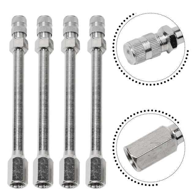 【LARGE APPLICATION】Cette buse de gonflage est universelle et largement utilisée pour le gonflage des pneus dans les voitures, les véhicules électriques, les motos, les monocycles électriques, les vélos d'équilibre, les camions, les véhicules de loisirs, les vélos, etc. Valve Pneu Voiture, Embout De Gonflage Laiton, Adaptateur De Valve De Pneu De Voiture, Clip De... Vissage et dévissage rapides et faciles, facile à installer avec les mains. 【PREUVE DE FUITE】Anti-return features, it has stable performance and effectively prevent leakage. Valves Pneus Autos Poteau D'Extension De Valve De Pneu - Adaptateur Universel De Gonflage Rallonge Valve Moto Trottinette 【FACILE À INSTALLER】Le produit est équipé d'un filetage, ce qui vous permet de connecter et de fixer efficacement la valve de gonflage et la pompe sans tomber. Le matériau métallique a une dureté élevée, est solide et durable, et n'est pas facile à casser. Résout la difficulté d'utilisation lors du branchement de la pompe. Lorsque le pneu est gonflé, la valve est trop courte, et la rallonge facilitera le gonflage de vos pneus. Facile à utiliser, elle vous permet de gonfler vos pneus rapidement. 【DÉTAILS DE LA TAILLE】La longueur de l'extension de la valve de pneu est d'environ 100mm/3., 94inch, la taille appropriée convient à différents types de pneus. Le noyau de valve intégré peut former un joint coordonné avec la tige de valve et faciliter le gonflage et le dégonflage du pneu. Extension valve pneu Facile à utiliser, il est pratique pour vous de gonfler vos pneus si rapidement. 【LARGE APPLICATION】Cet embout de gonflage est universel et largement utilisé pour le gonflage des pneus de voitures, véhicules électriques, motos, monocycles électriques, vélos d'équilibre, camions, véhicules de loisirs, bicyclettes, etc. Accessoires pour pneus,Extension de Valve de pneu en caoutchouc