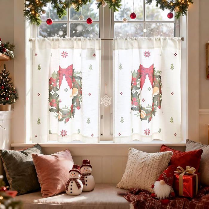 Dimensions 65x90cm Lot 2 Vangao Rideau Cuisine Aspect Lin Pour Salon Rideaux Courts Passe Tringle 65x115cm Lot De 2 Petit Rideau Brise Bise Moderne Intérieurs Fenetre Décoration Cache Placard Caravane Café, Blanc Lot Rideaux Festifs Ambiance de Noël élégante : Ce rideau de cuisine de Noël adopte un design de motif imprimé imitant le tricot, avec des rennes dans les couleurs classiques rouge... Figure 4 Dans Le Style De Dessin Animé Vecteur Linéaire Bleu Foncé Chiffres De Contour Adaptable à diverses scènes : Non seulement adapté à la décoration des fenêtres de cuisine familiale, mais aussi à celles de cafés, restaurants, salles de bain, bureaux, etc. Vangao Rideaux Cuisine en Lin Translucides Courts à Passe Tringle... pour orner l’ambiance de Noël. Haute qualité mélange lin-polyester : Fabriqué à partir d’un premium mélange lin-polyester, il est résistant à l’usure, aux plis, au décoloration et à la déformation, offrant une durabilité fiable. Entretien pratique : Avant la première utilisation, un lavage en machine délicat est recommandé, avec une température de l’eau ne dépassant pas 30℃. Ambiance de Noël élégante : Ce rideau de cuisine de Noël adopte un design de motif imprimé imitant le tricot, avec des rennes dans les couleurs classiques rouge et blanc.