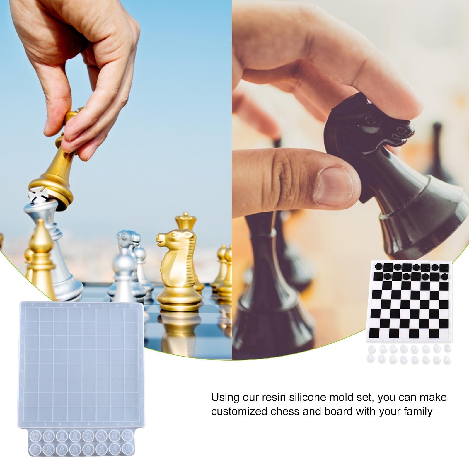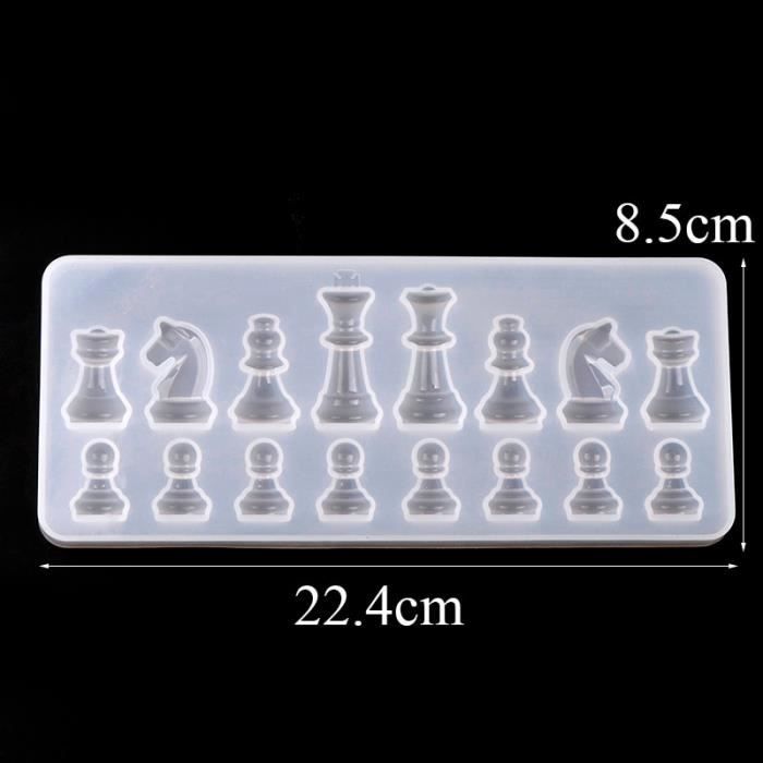 Moules en résine pour jeu d'échecs 3D pleine taille : Contenu : 16 moules d'échecs 3D (1 roi, 1 reine, 2 tours, 2 évêques, 2 chevaliers, 8 pions), 1 moule en résine pour pièces d'échecs, 1 moule en résine pour échiquier et 6 paquets de papier coquille tricolore. Moule Résine échecs Vange Jeu De Moules En Résine Pour Échiquier, Échiquier En Silicone Et Moule Resine En combinant différentes couleurs et en incorporant différents types de décorations ou de remplissages, tels que du papier de coquillage, des fleurs séchées, des pierres et du papier d'aluminium, vous pouvez créer une variété de styles. Ils sont simples et pratiques à utiliser. Moules à échecs créatifs en silicone : ces jeux d'échecs sont incroyablement pratiques et parfaits pour créer une variété d'œuvres d'art en résine. L'inspiration créative ne s'épuise jamais. Moule en silicone pour échecs, 1 moule échiquier 3D, 6 moules pour - Les moules en silicone moulé en résine sont très flexibles et durables, ce qui les rend faciles à enlever du moule. Une fois la résine complètement durcie, vous pouvez facilement enlever le produit fini. - Dimensions de la planche : 28 x 28 cm. Pour les moules d'échecs 3D, n'oubliez pas de presser après avoir versé la résine pour enlever les bulles d'air. Cet échiquier unique en résine fait à la main est un cadeau de vacances idéal pour la famille, les amis et les amateurs d'échecs. Description Ce moule répond aux besoins bricoleurs en permettant d'échiquiers en résine. Sa fabrication en silicone... MOULE A MODELER,2--Moule en Silicone en résine époxy, jeu de Puzzle pour enfants, échiquier de... Amusez-vous à commencer un nouveau projet artistique avec ces moules. - Lot de moules en silicone 3D en résine d'échecs disponibles dans une variété de tailles et sont faciles à utiliser. Nos moules en résine sont également très faciles à nettoyer. Utilisez nos moules en résine d'échecs 3D pour personnaliser votre propre style d'échecs unique en ajoutant différentes couleurs ou tout autre élément.