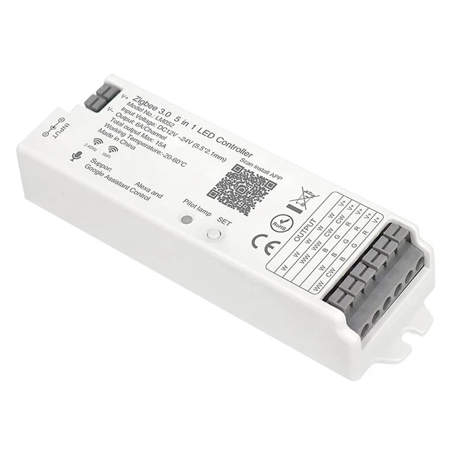Compatible Avec Assistants Vocaux LED RGBW Ampoule à Intensité Variable E27/9W/230V 2700-6500K Wi-Fi Tuya Variateur LED Intelligent Contrôleur LED Mi-Light LS2 - 5-en-1 - RGB+CCT - 2.4 GHz Ampoule Led RGBW avec télécommande, 3W E27 à intensité variable, blanc chaud 1800K, ampoule à... Contenu de l'emballage : 1 contrôleur Zigbee 3., 0., 1 x anglais. Seul le contenu de l'emballage ci-dessus, les autres ne sont pas inclus. Les dimensions autorisées sont de +/- 1 à 3 cm. Josenidny : 2., 4 GHz., Poids : 65 g. Entrée : DC 12 V ~ 24 V (0,6 x 0,2 cm) Contrôleur LM052 ZigBee 3., Sortie : 6 A/canal (sortie max., 15 A Température de fonctionnement : de -20 à 60 °C LED rvb RGBW contrôleur amplificateur aluminium 12... – Grandado