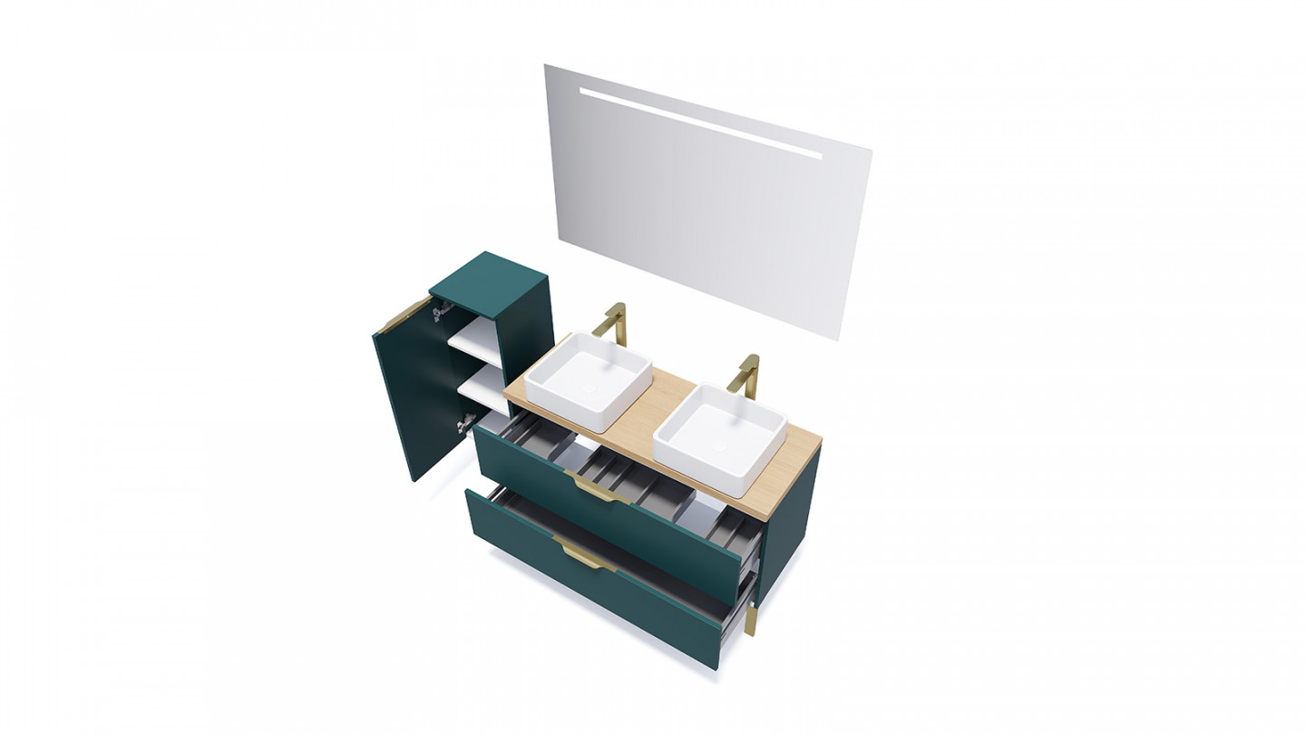 Meuble Sous Vasque Suspendu Meuble De Salle De Bain 80cm Vasque Déportée - 2 Tiroirs Et 2 Niches Olympe Ciment Gris Meuble Salle De Bain Sous Lavabo Meuble salle de bain double vasque suspendu Optez pour le meuble sous vasque suspendu tomi façon hêtre et blanc, au design contemporain ! · Profitez d'une solution de rangement optimisée et efficace grâce... Grâce à ses 2 tiroirs spacieux ainsi qu'à ses 2 niches ouvertes, vous bénéficiez d'un espace de rangement pratique pour vos accessoires, serviettes et produits de toilette, tout en gardant votre pièce parfaitement ordonnée. Suspendu au mur, il libère de la place au sol et accentue la sensation d'espace et de légèreté. 60 cm, ce meuble s'intègre facilement même dans les salles de bain de taille réduite, tout en offrant une solution esthétique et fonctionnelle. Sa structure coloris hêtre avec ses deux tiroirs en façade blanche créent un contraste raffiné qui s'adapte à toutes les ambiances de salle de bain. Ce meuble est conçu pour accueillir une vasque, sans trou pré-percé afin de laisser à chaque client la liberté de réaliser l'ouverture aux dimensions souhaitées. Optez pour le meuble sous vasque suspendu TOMI façon hêtre et blanc, au design contemporain ! Conçu pour accueillir une vasque, sans trou pré-percé afin de laisser au client le choix des dimensions , Dimensions globales : L., 1000 x l., 45 x H., 60 cm - H., tiroirs : 25 cm Profitez d'une solution de rangement optimisée et efficace grâce aux deux tiroirs et aux deux niches ! Meuble sous-vasque suspendu, pratique pour libérer de l'espace au sol Conçu pour accueillir une vasque, sans trou pré-percé afin de laisser au client le choix des dimensions Dimensions globales : L. 1000 x l. 45 x H. 60 cm - H. tiroirs...