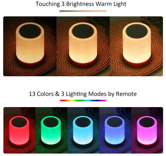 Si non utilisée, rechargez-la tous les 3 mois. ✅ 13 couleurs & 5 niveaux de luminosité : Choisissez parmi 13 nuances et ajustez la luminosité selon vos besoins (10% - 100%). ✅ Éclairage doux protégeant les yeux : Lumière diffuse et apaisante, parfaite pour les yeux sensibles, sans éblouissement. ✅ Caractéristiques Techniques : Dimensions : 15cm x 9., 3cm Temps de charge : 2 heures Poids : 240 grammes Certifications : CE, RoHS, FCC, PSE 📦 Contenu de la Boîte : 1x Lampe LED Tactile (notice incluse) 1x Câble de charge USB 1x Télécommande dédiée (Adaptateur secteur non inclus) 🔋 Conseil d'entretien de la batterie : Pour prolonger la durée de vie de la batterie, nous recommandons de maintenir la luminosité en dessous de 70%. ✅ Matière ABS de haute qualité : Résistante aux chocs, à la chaleur, incassable et sans BPA. Lampe De Chevet Tactile, Lampe De Table Pour Enfant, 13 Couleurs... La lumière est uniforme et douce, idéale pour les veilleuses qui s'endorment rapidement dans la chambre à coucher. ✅ Sécuritaire & économe en énergie : Recharge USB-C avec protection contre la surchauffe/surcharge. Pas de boutons compliqués. Lampe De Table Sans Fil Rechargeable Veilleuse Rechargeable USB Avec Télécommande - 13 Couleurs RVB - Lampe D'ambiance Veilleuse Bébé RGB Télécommande 3 Modes & 13 Couleurs]3 modes d'éclairage: flash, stroboscope, fondu, 13 couleurs RGB de lumière et 5 niveaux de luminosité pour la lumière jaune chaude 💡[Veilleuse Multifonctionnelle]La veilleuse led crée une atmosphère chaleureuse et romantique. Convient pour la chambre à coucher, le bureau, le camping et autres activités de plein air 💡[Fonction de Minuterie... Avec une longue touche, vous pouvez allumer et éteindre la lampe de table. La fonction de charge rapide USB - C est entièrement rechargeable en seulement 2 heures. Avec 3 modes de lumière spéciaux (effet respiratoire, léger scintillement et lumière constante), il crée une atmosphère de sommeil parfaite pour les petits rêveurs. Protection contre la surchauffe et technologie LED économe en énergie (Surface toujours fraîche). Lampe de nuit - LED - Veilleuse Bébé - Tactile - Dimmable - Trois Idéal pour les voyages, la maternelle ou la lecture de nuit. ✅ Portable & polyvalente : Légère, pèse seulement 240 grammes. Parfaite pour la chambre, le balcon, le camping ou en tant que lampe de secours. Base en caoutchouc antidérapante pour une stabilité optimale.