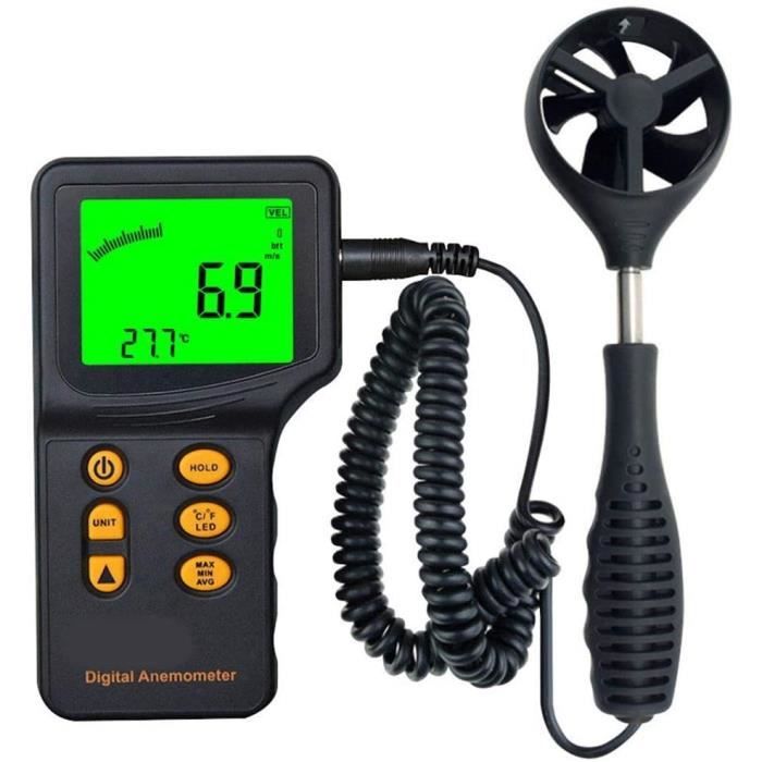 * Compatibilité : testeur de vitesse du vent. Accessoire Météo Portable étanche Compteur De Vitesse Du Vent Anémomètre Portatif, Testeur De Vitesse Du Testeur Vitesse Du Vent 【Robuste et durable】Fabriqué avec des matériaux, cet anémomètre peut résister à des conditions difficiles. Que ce soit pour les activités de plein air ou les tests professionnels de la vitesse du vent, c'est le compagnon idéal. Restez informé et confiant grâce à l'écran clair et lisible. Faites confiance à sa robustesse pour une utilisation à long terme. Anémomètre Numérique Portatif Compteur De Vitesse Du Vent HT605 Testeur * Design convivial : avec des boutons intuitifs et un fonctionnement simple, cet anémomètre est facile à utiliser pour les professionnels et les débutants. *Nombre de pièces : 1., Contenu du paquet : 1 testeur de vitesse du vent de poche pour anémomètre. * Dimensions : 10,4 x 5,7 x 1,9 cm., *Couleur : noir, jaune. Avec son haut, il peut mesurer la vitesse du vent de 0 à 30 m/s, des données précises à chaque fois. Le design ergonomique offre une prise en main confortable, permettant un transport et une utilisation sans effort. Il permet de mesurer la vitesse et la température d'un flux d'air à vitesse < 30 m/s, ainsi que de calculer le débit absolu et relatif (en m3... Cikonielf testeur de vitesse du vent Anémomètre numérique à 8 lames jauge de vitesse du vent... * Haute précision de mesure : cet anémomètre est équipé de capteurs avancés pour fournir des mesures précises et fiables de la vitesse du vent. Caractéristiques : *Nom du produit : testeur de vitesse du vent de poche anémomètre. 【Petit et portable】: le design de poche de cet anémomètre permet un transport facile, ce qui le rend pratique à transporter partout avec vous. Parfait pour les activités de plein air ou les tests professionnels de la vitesse du vent.