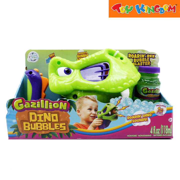 Convient aux enfants de 3 ans et plus. Jouet Fête Anniversaire Plein Air Turbo Bubbles Gazillion-Ventilateur à Bulles Mécanique, 36398, Vert[879 Machine à Bulles Enfant Effet Sonore Description du produit Découvrez le Roarin' Rex Bubble Blaster de Gazillion Bubbles, une expérience de bulles de qualité exceptionnelle ! Présentation du produit Lanceur de Bulles Dino Effets sonores 118 ML. [G389] Comprends 1 pistolet à bulles Roarin' Rex Bubble Blaster et une bouteille de 118ml de Solution à bulles. FACILE À UTILISER : Versez la super solution top secret de Gazillion Bubbles dans le réservoir de solution à bulles, appuyez sur la gâchette et activez le son pour créer de belles bulles rugissantes... Adapté aux enfants de 3 ans et plus. Avertissement De Sûreté Attention:Contient des substances parfumantes susceptibles de causer des allergies Lanceur De Bulles Dino Effets Sonores 118 Ml[Y510] - TV Son... Amusez-vous en toute sécurité avec Gazillion Roarin Rex Bubbles Blaster et profitez d'une bouteille de 118 ml de notre solution à bulles incluse. Il vous suffit d'ouvrir la languette violette et de verser notre super solution top secrète pour un spectacle fascinant. Comprends 1 pistolet à bulles Roarin' Rex Bubble Blaster et une bouteille de 118ml de Solution à bulles. Pistolet à bulles géantes Giant Gazillion Gazillion : King Jouet, Jeux de plage Gazillion Activez le rugissement du dinosaure en appuyant sur la gâchette et admirez le Roarin' Rex Bubble Blaster créer des bulles étonnantes. AMUSEZ-VOUS À L'EXTÉRIEUR : Idéal pour les fêtes d'anniversaire, les événements spéciaux et toutes les activités de plein air !