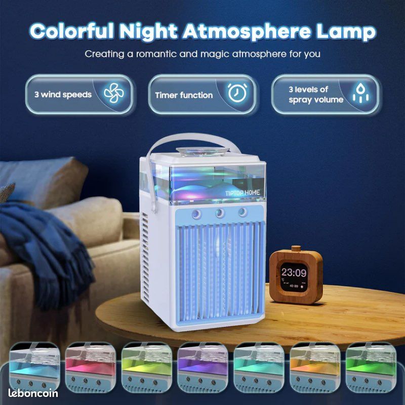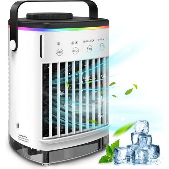 Vous pouvez également améliorer l'effet de refroidissement en ajoutant de l'eau ou de la glace. Climatiseur Mobile Pour Chambre, 3 Vitesses Réglables Climatiseur Sans... Le climatiseur mobile ne contient pas de réfrigérants nocifs, n'utilise pas de compresseur, a une faible consommation d'énergie qui peut réduire vos factures d'électricité et est respectueux de l'environnement. Réservoir d'eau extra large de 1000 ml : le refroidisseur d'air peut contenir 1000 ml et peut fonctionner en continu pendant plus de 10 heures après le remplissage. Ventilateur Climatiseur à Eau Climatiseur Mobile, Ventilateur USB 3 En 1 Avec Refroidissement Par Eau Climatiseur Avec Reservoir Économie d'énergie et réduction du bruit : lors du fonctionnement du mini climatiseur, il n'y a qu'un léger bruit, qui est ≤ 40 dB et ne perturbe pas votre sommeil. Climatiseur mobile 4 en 1 : notre mini climatiseur n'est pas seulement un climatiseur, mais aussi un ventilateur, un humidificateur et une veilleuse 7 couleurs. Grand angle de sortie d'air de 120 °, sortie d'air réglable à 90 °, le design multifonctionnel est suffisant pour répondre à vos différents besoins USB et portable : le mini climatiseur est équipé d'un câble de type C et peut être alimenté par ordinateur, voiture, adaptateur USB, grande alimentation mobile, etc. En haut, il y a également une poignée qui facilite le transport. Par rapport à d'autres refroidisseurs d'air, nos refroidisseurs d'air les dépassent de loin en termes de puissance de brouillard et de moteur de ventilateur Notre réservoir d'eau est conçu visuellement, de sorte que vous pouvez lire le niveau d'eau à tout moment et garantir une expérience d'utilisation optimale. Choisir un climatiseur pour une chambre 【Technologie de moteur sans balais et de pulvérisation】 : grâce à notre dernière technologie de rideau de brouillard brevetée, l'effet de refroidissement est amélioré de 30 %, la vitesse maximale du vent est de 4 m/s et le volume maximum de brume du climatiseur mobile est de 8 ml/min. Vous pouvez l'utiliser dans la chambre, le salon, la cuisine, la voiture ou lors de la pêche en plein air, le camping, le pique-nique, etc. Les meilleurs climatiseurs mobiles pour cet été 2025