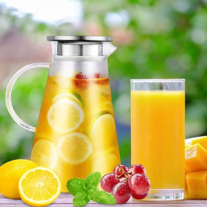 -Capacité de la bouteille thé glacé : 1,4L. Belle Vous Carafe Eau Verre Transparente - Pichet Eau avec Couvercle... CONCEPTION PRATIQUE : Dotée d’un couvercle en silicone, cette carafe the glace avec infuseur garantit une manipulation sûre tout en protégeant vos mains de la chaleur. -1x Brosse de nettoyage en silicone. Carafe à Eau Verre 1.4L Carafe En Verre Avec Couvercle En Bambou 1,2L CHILA - Transparent - Veo Carafe Eau VERRE RÉSISTANT À LA CHALEUR : Fabriquée en verre borosilicaté épais et durable, cette bouteille infuseur à thé peut résister à des températures comprises entre -20 et 150 degrés Celsius, ce qui la rend idéale pour préparer des thés chauds ou glacés Transformez votre routine d'hydratation grâce à cette carafe en verre de qualité supérieure avec couvercle en acier inoxydable. D’une capacité de 1,4L, cette carafe en verre avec insert de brochettes de fruits est parfaite pour l’eau, les jus de fruits et autres boissons Le bec verseur du couvercle à gravité garantit un service sans déversement ENTRETIEN SIMPLE : Cet ensemble comprend une brosse de nettoyage en silicone qui vous permet de maintenir la propreté de votre gourde infuseur fruit, en la gardant hygiénique. Inclus : -1x Carafe en verre avec bouchon en acier inoxydable et insertion de baton de fruits. Dimensions : -Bouteille d’eau : L13 x H30cm. Pichet En Verre Carafe À Eau Pichet Transparent Avec Couvercle... Le nettoyage est un jeu d'enfant grâce à la brosse de nettoyage en silicone incluse, spécialement conçue pour s'adapter au goulot étroit de la bouteille d eau en verre. Elle ne passe pas au lave-vaisselle et doit être nettoyée à la main Une carafe personnalisée pour faire toute la différence