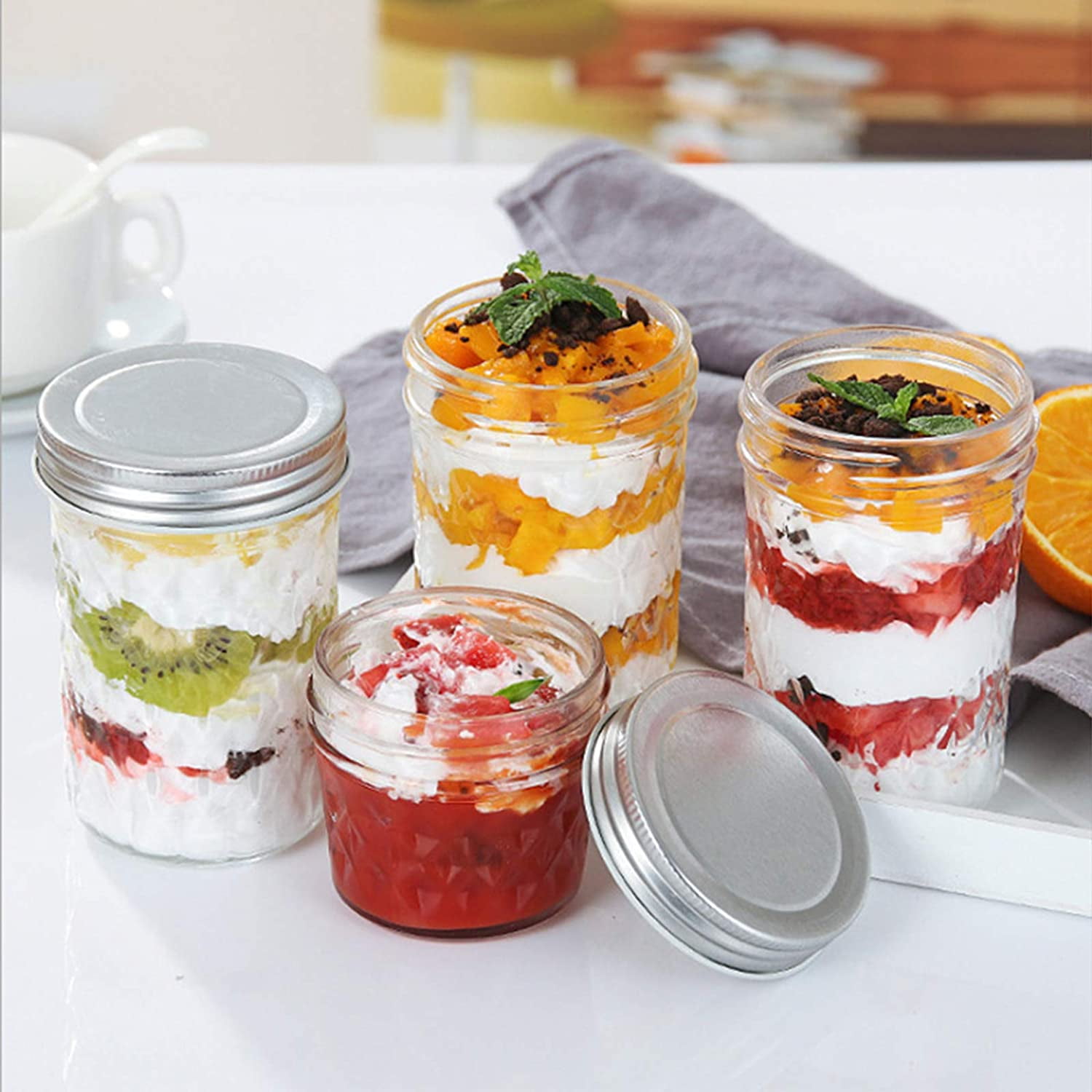 Contenants Rangement Aliments Suwimut Lot De 12 Petits Bocaux Mason En Verre Avec Couvercles Hermétiques Pour Gelée, Confiture, Miel, Haricots, Cornichons, épices, Yaourt, Aliments - 236,8 G Pots Cadeaux Mariage Personnalisables Étagères de cuisine avec bocaux en verre vierges isolés sur fond blanc... Mini pot en verre dragées ou confiture – Fermeture métal Fermez hermétiquement:chaque pot est livré avec un couvercle en aluminium sécurisé, facile à fermer et à ouvrir, garantir que vos articles restent frais. Bocal en verre,660ml--Bocaux De Rangement En Verre, En Forme De Cœur... Pratique à utiliser et à nettoyer:ces mini pots à épices peuvent être stockés proprement et au sec, aliments humides ou non périssables dans un endroit frais et sec, garder les aliments intacts; Il est facile de les laver avec de l'eau et un chiffon humide, les rendre propres pour la prochaine utilisation Utilisations diverses:Idéal pour conserver la confiture, gelée, mon chéri, thé, candy, épices et bien plus encore, et cela peut être un cadeau avec ces petits bocaux en verre pour une fête, mariage, noël etc. Vous pouvez personnaliser les pots avec des étiquettes DIY ou de jolis autocollants pour une identification facile et une touche décorative. Petits bocaux Mason INTERWARM de 1., 7 oz avec couvercles argentés Taille:50 ml/ 1., 69 oz