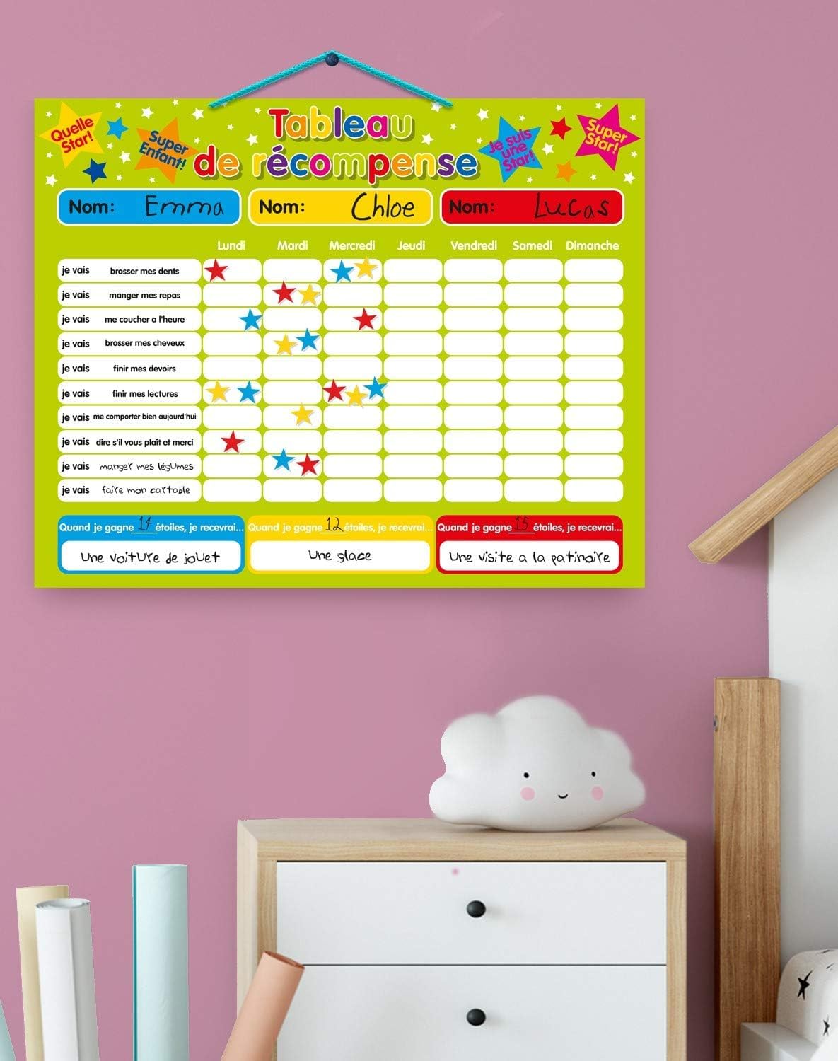 Outil éducatif Positif Verre De Récompense Avec 30 Jetons En Forme D'étoile, Support En Bois Tableau De Routine Enfant Horloge murale rétro Imitation bois, style europée... - Grandado Carte de vœux de Noël 3D Forme de bouteille de dérive de Noël 3D Up... Système de récompense motivant pour les enfants : Notre bocal à récompenses est un système de récompense efficace qui encourage votre enfant de manière ludique à adopter un comportement positif et de bonnes habitudes. Bocal à récompenses pratique et polyvalent : Ce bocal à récompenses de haute qualité, fabriqué en acrylique et bois robuste, se fixe facilement au tableau grâce à des bandes magnétiques ou est exposé sur le support en bois. Design ludique et adapté aux enfants : Notre tableau de récompenses pour enfants est orné de motifs colorés et amusants tels que des voitures, des gouttes d'eau et des panneaux de crottes. Description du produit Caractéristiques du produit Nom : Bocal à récompenses étoiles Quantité : 1 bocal à récompenses Matériau : Bois, acrylique Dimensions : 18 cm x 18 cm Contenu de l'emballage 1 bocal à récompenses 25 symboles étoiles 1 cadre en bois 2 bandes magnétiques 1 corde Avertissement De Sûreté Non Le tableau de récompenses permet de visualiser les progrès et de célébrer les réussites. Matériau de haute qualité : Fabriqué en bois durable et en acrylique transparent, notre bocal à récompenses est robuste et ne se casse pas facilement. Les étoiles aux couleurs vives attirent facilement l'attention des enfants et les séduisent. SUPPORT BOIS JACK Daniel's Single Barrel avec sa Bouteille vide EUR 45...