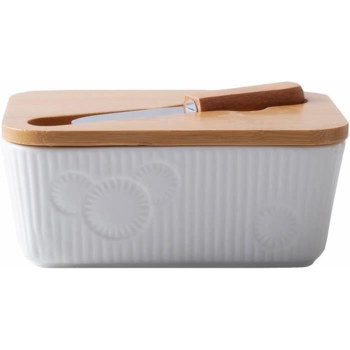 Le couvercle protège efficacement votre beurre tout en le maintenant à la température idéale pour un service facile. Beurrier Porcelaine Lave-vaisselle Beurrier Céramique Theo&Cleo - Porcelaine Blanche Lave-vaisselle - Capacité 250g Beurrier Porcelaine 250g Lavable à l'eau ou au lave-vaisselle, et compatible micro-ondes Beurrier Ceramique Beurier Avec Couvercle Et Couteau À Beurre, Beurrier En Verre En Porcelaine, Boite Beurre, Boite À Fromage Pour Frigo Anti Odeur, - Maison Beurrier Design Fleuri Jaune La base blanche en porcelaine de haute qualité est parfaitement dimensionnée pour accueillir les plaquettes de beurre standard. La conception intelligente permet un stockage pratique au réfrigérateur tout en gardant votre beurre facilement accessible. Beurriers de table en porcelaine ; BEURRIER BASQUE EN PORCELAINE · 35,50 EUR · 8H UI PS FA P ; Beurrier Vache Minimaliste en Porcelaine Revol... Indispensable pour les fêtes, anniversaires et occasions spéciales, il apporte une touche décorative raffinée à toute table Beurrier avec couvercle et poignée :Couvercle est équipé d'une poignée pour une ouverture facile et un maintien hermétique. Design élégant et minimaliste – idée cadeau pratique : Disponible en noir ou blanc, ce beurrier en porcelaine s’intègre dans toutes les cuisines modernes ou traditionnelles. Une idée cadeau chic et utile pour pendaisons de crémaillère, mariages, Noël ou amateurs d’accessoires de cuisine raffinés Sa surface lisse (dimensions : 19,5 x 9,5 x 8,5 cm) convient parfaitement pour un bloc de beurre ou fromage de 250g La finition en porcelaine de qualité supérieure assure une durabilité exceptionnelle et un nettoyage facile. Facile d'entretien :La surface lisse de la céramique préserve la fraîcheur du beurre pour une tartination optimale. Doté d'un couvercle décoratif jaune orné de motifs floraux délicats en blanc, il apporte une touche de gaieté à votre table. Idée cadeau idéale :Parfait pour les amateurs de beurre, proches ou amis.