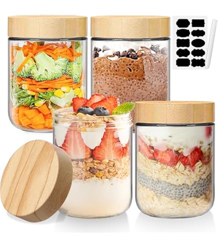 Bocaux Polyvalents: Bien plus que de simples bocaux overnight oats ! Bocaux En Verre Bocal En Verre Hermétique Avec Couvercle, Hermétiques À Bocaux En Verre Hermétique 6 couvercles de couleurs différentes vous permettent de différencier les différents ingrédients ou les pots et bocaux de conservation de votre famille, évitant ainsi toute confusion; le verre transparent vous permet de voir la quantité de nourriture restante, évitant ainsi le gaspillage. ) Refusez la pollution par le plastique, protégez la sécurité alimentaire. 【Esthétique】Les couvercles colorés permettent une présentation esthétique et polyvalente dans la cuisine. Le nettoyage au lave-vaisselle permet de se libérer les mains. 6 Pack Overnight oats Jar, Pot Yaourt en Verre Avec Couvercle ✔ Ouverture large pour remplir, manger et nettoyer sans effort. Cadeau idéal pour: Noël, Thanksgiving, Anniversaires, Pendaison de crémaillère. Idéal pour les étudiants, les professionnels, les voyageurs et les amateurs de fitness! Le bouchon concave s'adapte parfaitement au corps en verre, ce qui permet aux bocaux rangement cuisine de s'empiler fermement sans trembler, et rend le rangement du placard et du réfrigérateur plus net et plus ordonné. et pour stocker des repas en lots. 10 idées fantastiques pour recycler les couvercles de bocaux en verre... Bocaux En Verre Avec Couvercles - 8Pcs Bocal Hermétique - Pot En Bambou... Design Fonctionnel: ✔ Le système de fermeture à double joint (bouchon à vis + anneau en silicone) empêche les fuites. Parfait pour Styles de Vie Occupés: ✔ La taille compacte se glisse facilement dans les sacs à lunch et les sacs à dos. Couvercle avec anneau d'étanchéité en silicone de qualité alimentaire, formant un environnement scellé pour prolonger la fraîcheur des ingrédients (tels que les flocons d'avoine de nuit, les yaourts, etc. ✔ Le design clair comme du cristal vous permet de vérifier le contenu en un coup d'œil.