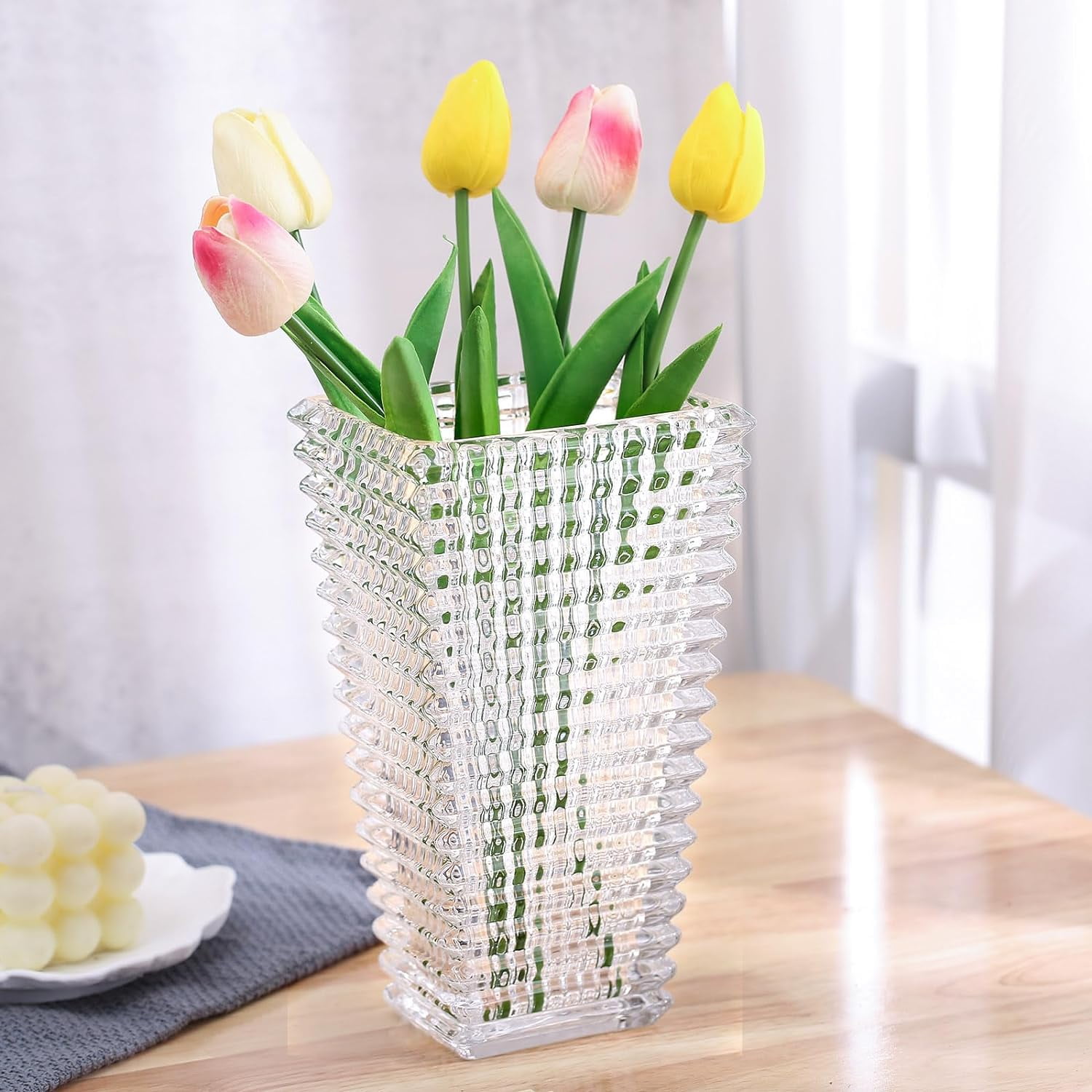 Vase Mariage Vase En Verre Transparent Pour Fleurs, Vase à Fleurs En Cristal De Vase Centre Table Fleurs Séchées Le vase en verre cristal transparent n'est pas seulement un élément décoratif ; il est également un excellent choix pour de nombreuses occasions. Que ce soit pour un mariage, un anniversaire, ou simplement pour embellir votre quotidien, ce vase saura s'adapter à chaque événement Lot Vases Cristal Lot De 24 Mini Vases En Verre Vintage - Cristal Ajoute plus de vigueur et de sophistication à votre pièce. Plus léger et plus résistant que le verre, il mesure 20 x 16 x 4,5 cm. Utilisez-le comme vase pour fleurs fraîches ou artificielles, ou simplement comme objet... Décoration d'art contemporain parfaite pour votre cuisine, salle à manger, salon, bureau. Fabriqué en verre transparent, ce qui lui donne une sensation robuste et durable. Convient pour les arrangements floraux frais, les fleurs séchées ou en soie et les remplissages de vase. Vase décoratif pour décoration de cheminée, décoration d'étagère, décoration de cheminée et décoration d'étagère.