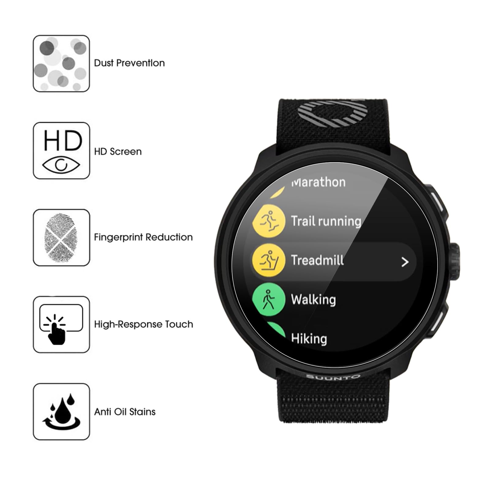 CHRINECY [3 Pièces] Verre Trempé Compatible avec crosscall CORE X4 Protection Écran Pour Samsung Galaxy Note 20 Verre Trempé[2 2 Pièces... Protection écran Suunto Run Verre Trempé 9H Pour SUUNTO Run, Protecteur D'écran Premium Bracelet Suunto Run Fonctionnalités: Prime Matériel: Fait de verre trempé de 9H supérieure qui est résistant aux rayures et incassables pour protéger votre écran des rayures à haut gouttes d'impact. Le revêtement oléophobe sur la surface protège l'écran de la montre des traces de doigts et des taches d'huile. Pack x6] Film de Protection en Verre Flexible Dureté 9H pour montre... Maintient la sensibilité de réponse, assurant un lancement rapide de l'application. Facile à Installer: Pas d'adhésifs à bulles pour une installation facile avec fonction d'adsorption. 【Ultra Clear et Haute Sensibilité au toucher】La haute transparence vous offre un affichage HD clair et une expérience de visionnage optimale. 【Compatibilité】Protecteur d'écran spécialement conçu pour Suunto Run.