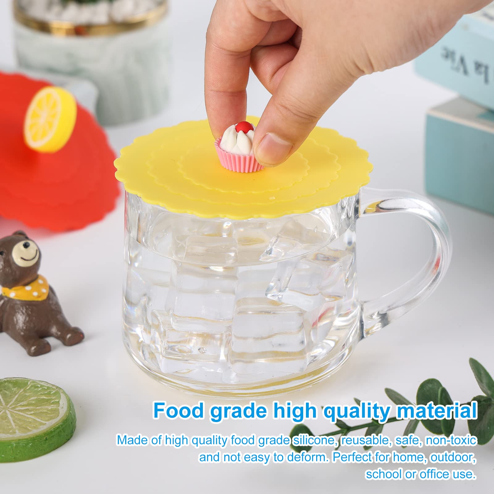 Vous recevrez un lot de 6 couvercles en silicone parfaits pour tous les types de verres. Investissez dans ces couvercles pratiques en silicone pour verres et profitez de vos boissons sans stress, 1., Que reçoit l'acheteur ? L'acheteur reçoit un lot de 6 couvercles en verre pour verres. Le silicone de haute qualité garantit une bonne étanchéité, de sorte que vos boissons ne fuient pas. En été, ils sont un must absolu pour éloigner les insectes lorsque vous profitez de vos boissons en plein air. Il est également résistant à la chaleur et au froid, ce qui le rend idéal pour une utilisation avec différentes boissons., 3., Quelle est la technique de fabrication et les caractéristiques du produit ? Les couvercles sont fabriqués avec des techniques de fabrication modernes pour garantir une qualité uniforme. Ces couvercles en silicone offrent une solution pratique pour protéger vos boissons., 2., Quel est le matériau utilisé ? Les couvercles en verre sont fabriqués en silicone de qualité supérieure. Couvercle Silicone Extérieur Verres à Boire Xianrenge Avec Couvercles En Bambou Et Paille En Verre 4pcs Set - Tasses En Verre Couvercle En Silicone Pour Meuble Lurch - Couvercle En Silicone Pour Verre à Boire - Set 6 Pcs Vert 10 5 Cm La facilité d'utilisation de ces couvercles est également remarquable. Ces couvercles en silicone offrent une solution polyvalente pour votre usage quotidien. Le bord élastique en silicone assure une connexion étanche au verre pour éviter les fuites de boissons., 4., Pour qui et dans quelles situations le produit est-il adapté ? Ces couvercles en verre conviennent à toutes les personnes qui veulent protéger leurs boissons. Couvercle pour verres de toutes sortes : notre couvercle en verre est idéal comme couvercle pour les verres, les tasses à café, les chopes à bière, les verres à... Vous pouvez les utiliser aussi bien pour les boissons froides que pour les boissons chaudes, qu'il s'agisse de café, de thé, de jus ou d'eau. Nous sommes fiers de vous offrir un produit de qualité supérieure. Leur forme est conçue pour s'adapter à différentes tailles et formes de verre. Lot de 6 couvercles en silicone pour verres - Réutilisables et anti-poussière - Couvercles en silicone de qualité alimentaire - Couvercles en forme d'animaux... La fonction principale des couvercles est d'éloigner les insectes et les impuretés et de garder les boissons fraîches., 5., Merci beaucoup. Notre équipe de service client est à votre disposition pour toutes les questions et s'efforce de vous offrir le meilleur service. Les couvercles s'adaptent à différentes tailles et formes de verre, ce qui augmente leur diversité.